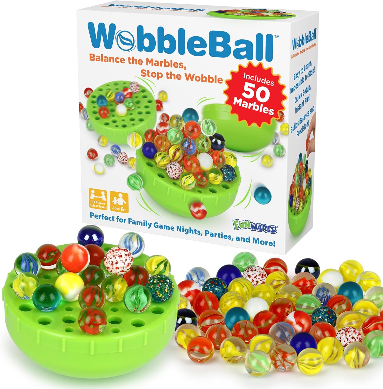 Funwares WobbleBall Marble Balance Game, 50 Marbles Included, Skill & Dexterity Games for Kids & Adults, Family Party Game for 1-4 Players, Ages 6+