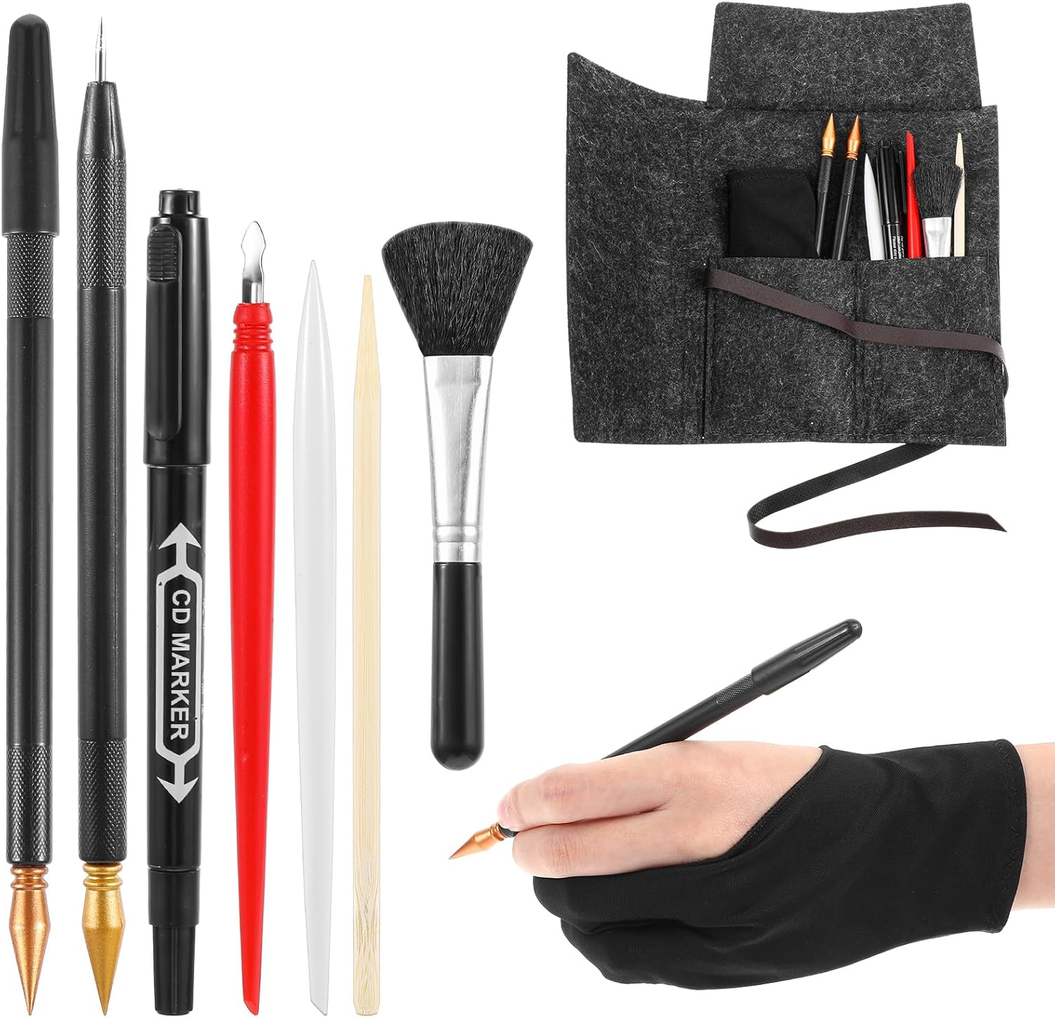 9Pcs Scratch Art Tools Set Including Artist Glove, Tool Bag, Scratch Coloring Pens, Plastic And Wooden Stylus, Scraper, Repair Pen, Clean Brush Scratchs Painting Drawing Tools for Adult Painting Paper