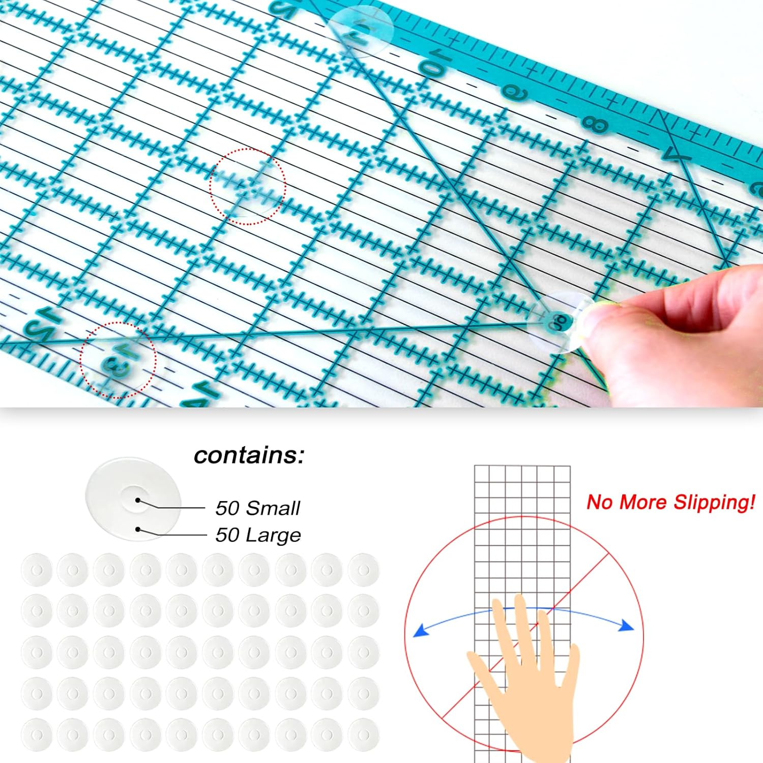 - The kit also includes 50 non slip grip rings, these non slip grips can help you avoid slippage of the ruler and template when using the rotary cutter.
