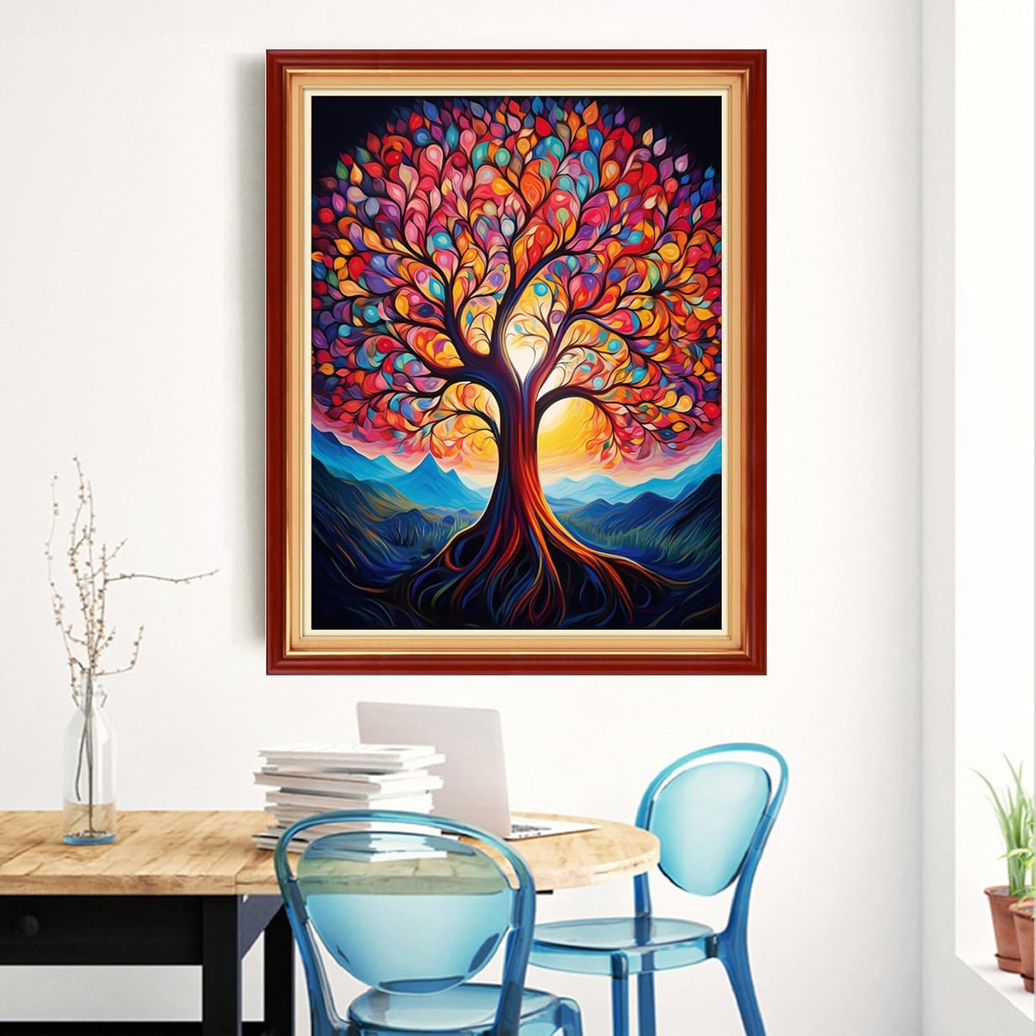 Magxvouy Cross Stitch Kits Stamped Full Range of Embroidery Kits,Cross Stitch Patterns Needlework Kits for Beginners 11CT Printed Kits&Colorful Tree 16x20 inch