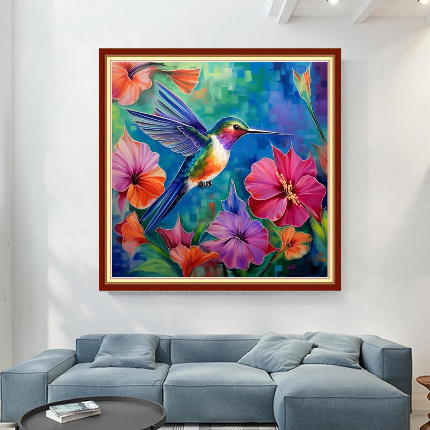 Magxvouy Cross Stitch Kits Stamped Full Range of Embroidery Kits,Cross Stitch Patterns Needlework Kits for Beginners 11CT Printed Kits&Hummingbirds 18x18 inch