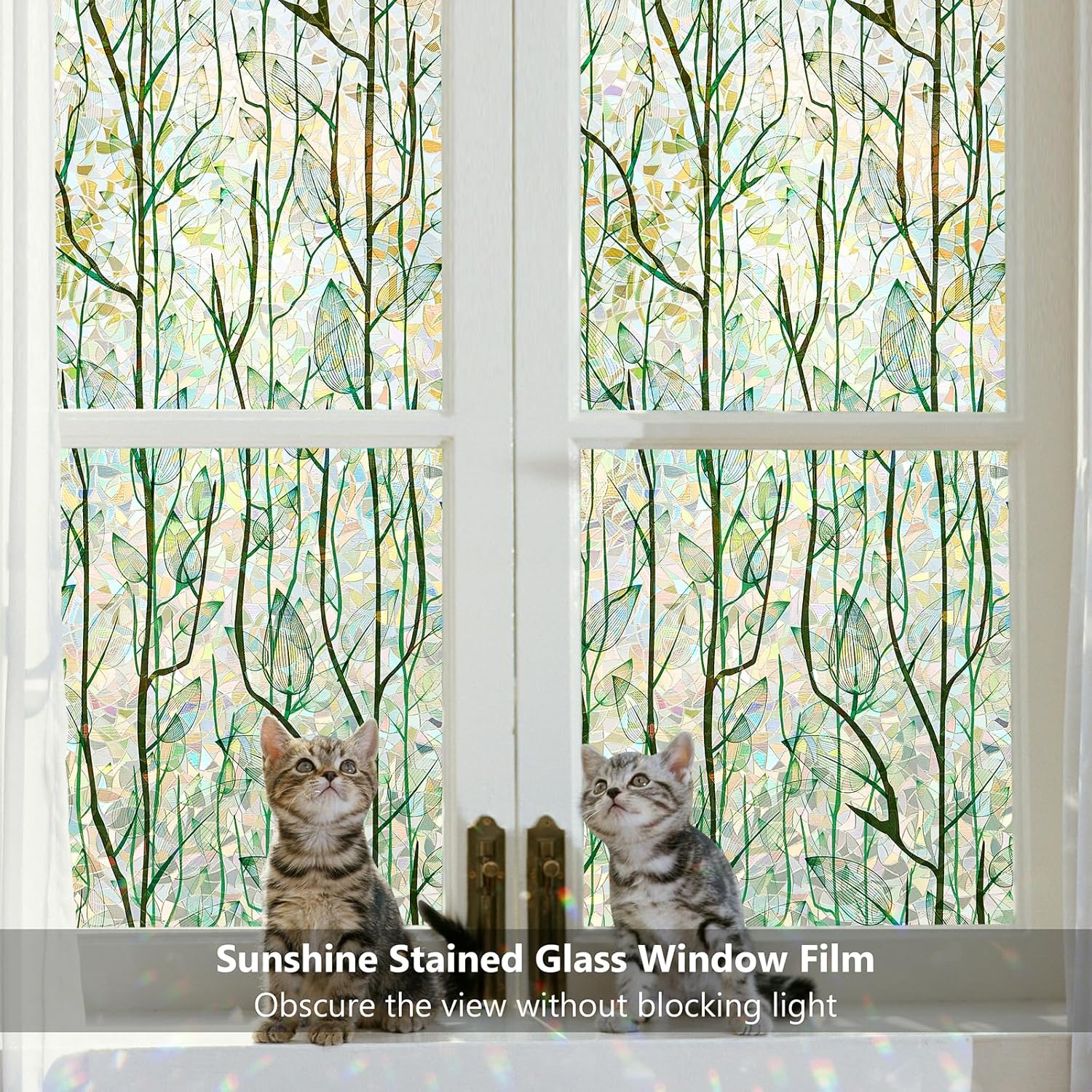 - 【Vivid Leaf & Rainbow Effect】Elegant green leaf designs create stunning rainbow holograms in sunlight, transforming plain glass into nature-inspired art that enhances any décor.