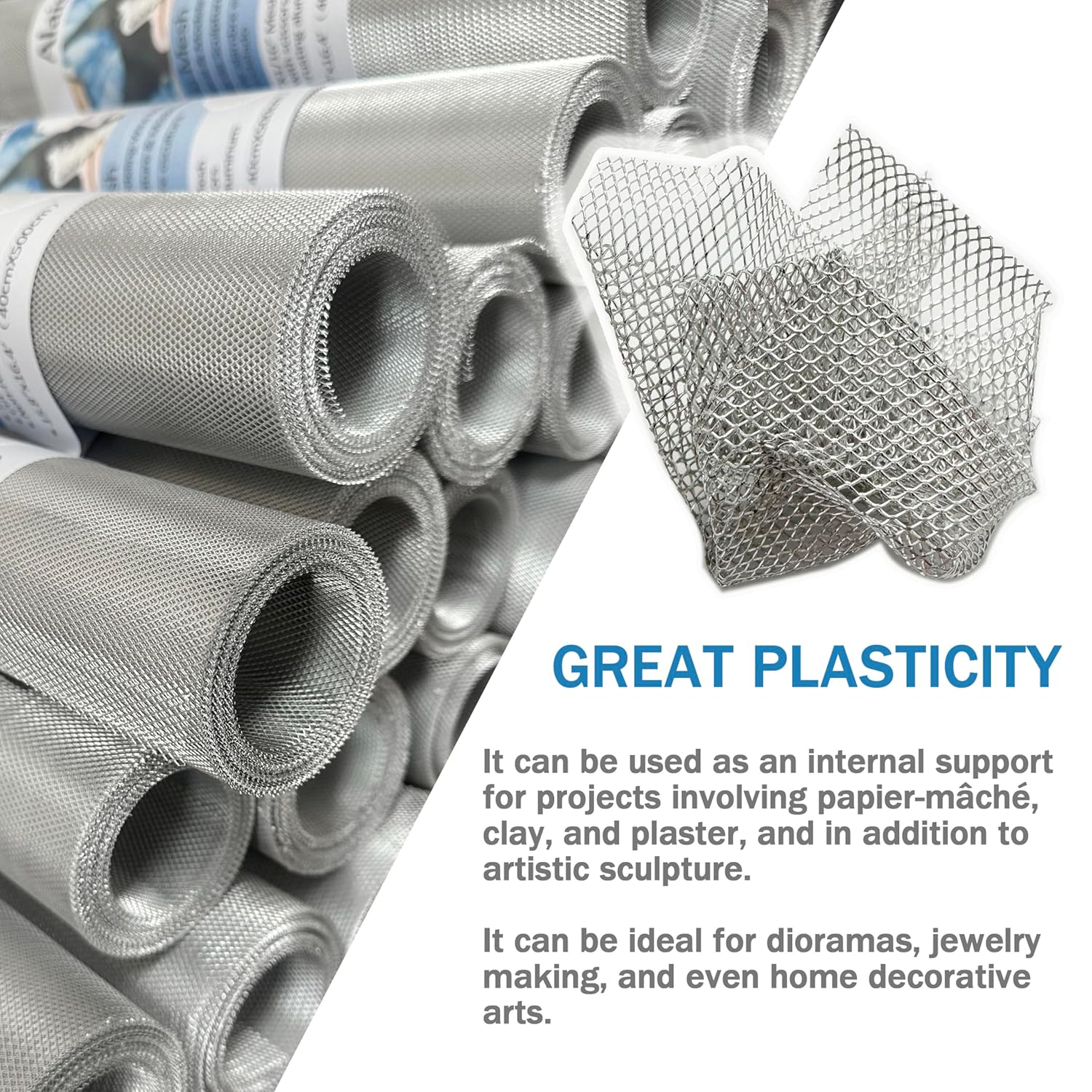 Sculpting Wire Mesh 15.7 Inch by 16.4 Foot Roll,Aluminum Wire Mesh for Arts and Craft for Sculpting Clay, DIY Projects, Model Train Scenery, Dioramas, Jewelry, Masks, Home Decor Art