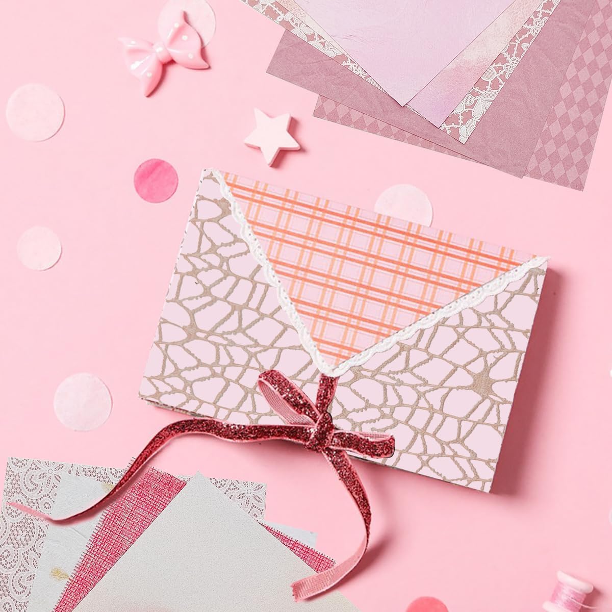 - Abundant Quantity: Enough quantity with various decorative paper, including 63 sheets scrapbook paper with printed textured patterns and 42 sheets mesh fabrics.