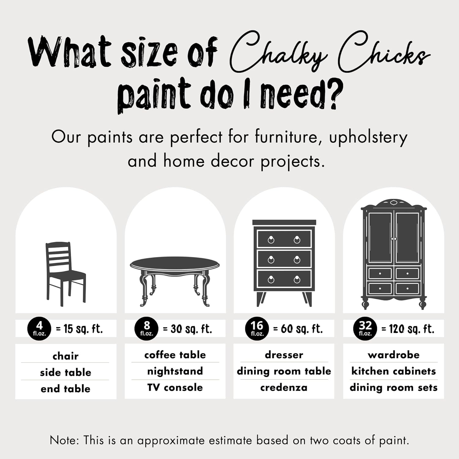 - TRANSFORM FURNITURE AND HOME DECOR WITH EASE: Chalky Chicks will save you time, money, and hassle. No sanding, priming, or multiple coats needed—just start painting your furniture with our cabinet paint no sanding or priming. Our paint is suitable for wood, metal, concrete, textiles, laminate, and more. Whether you prefer navy blue chalk paint, light blue paint, or green chalk paint, our chalk paint for furniture transforms any space with ease, making it ideal for DIY projects & craft painting.