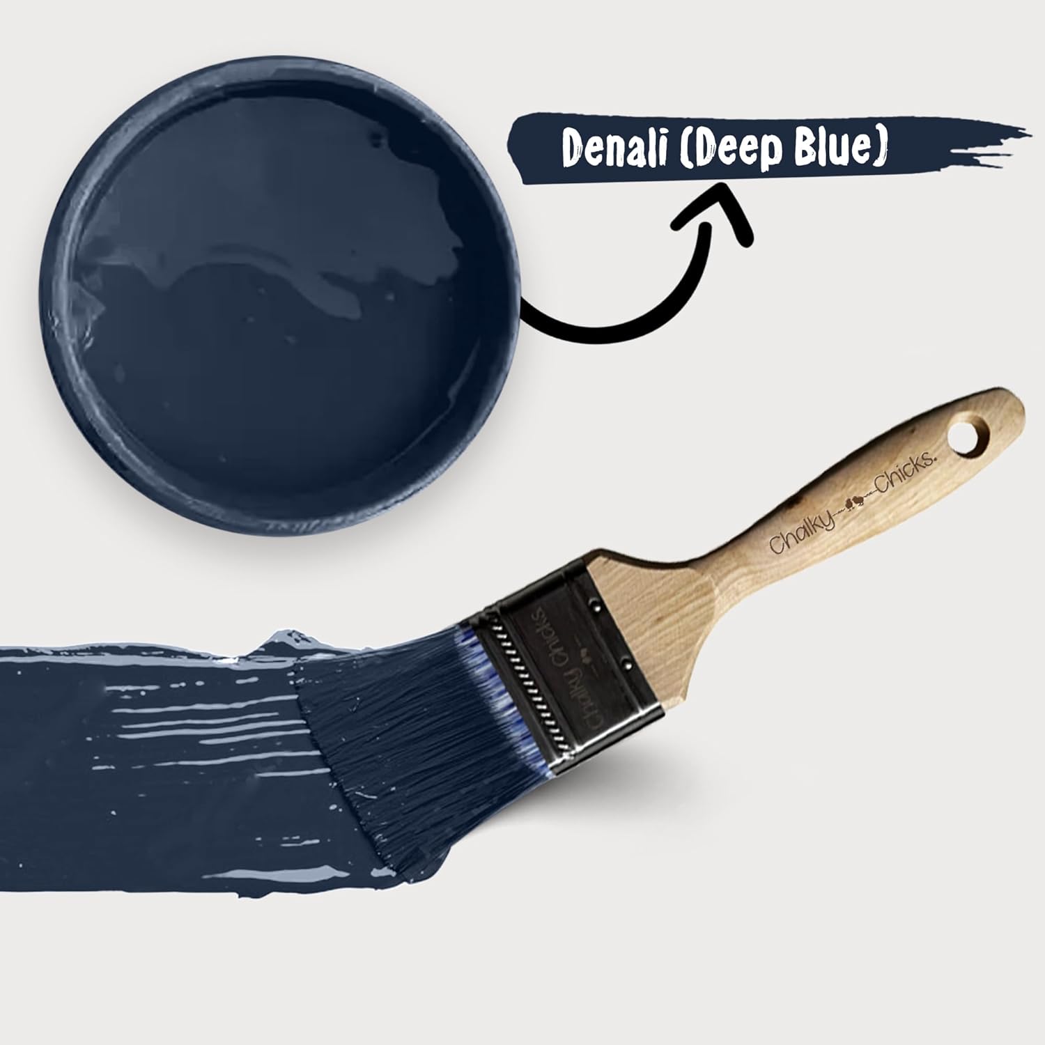 Chalky Chicks All-in-One Chalk Paint for Furniture or Cabinet - 8 Fl Oz - Matte Finish Denali (Deep Blue) for Metal, Wood Furniture Paint - No Sanding All-in-One for Home Decor & Crafts, USA Made