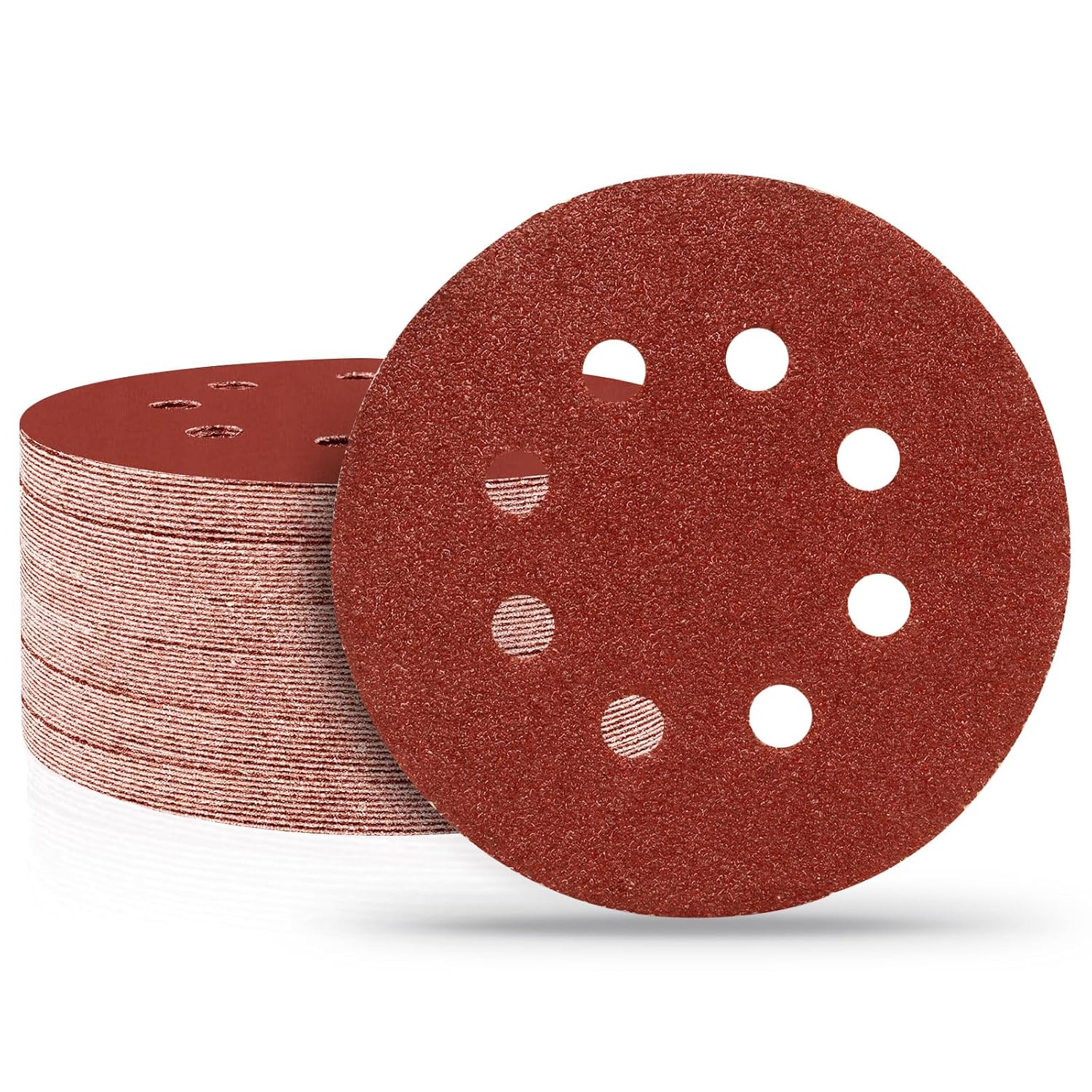 120 PCS 5 Inch Sanding Discs 40 Grit, 8 Hole Aluminum Oxide Hook and Loop Round Sandpaper for Random Orbital Sander