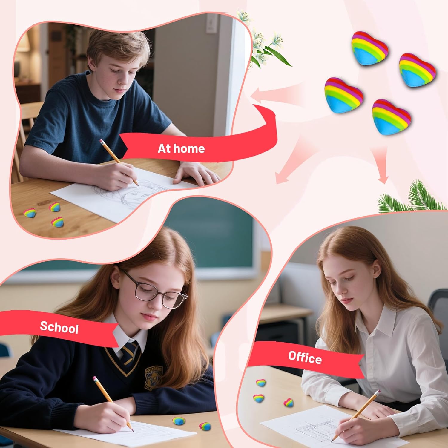 AmoreAngel Crafts 16 Pcs Heart Shaped Erasers,Pencil Erasers,Easy to Hold Rainbow Colorful Eraser,Pink Erasers,Back to School Supplies,Office Use