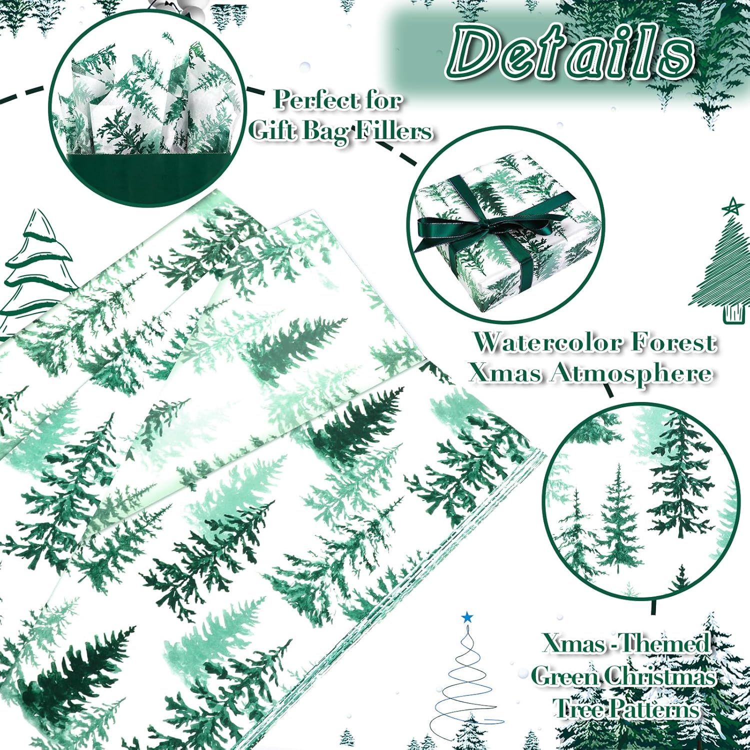 - 🎄🎁🎄【GREAT QUALITY】: Our watercolor Christmas tree tissue paper is made of high quality 17g tissue paper with clear graphic printing, durable and not easy to tear. You can fully enjoy the process when you are making craft works, gift wrapping and decorating.