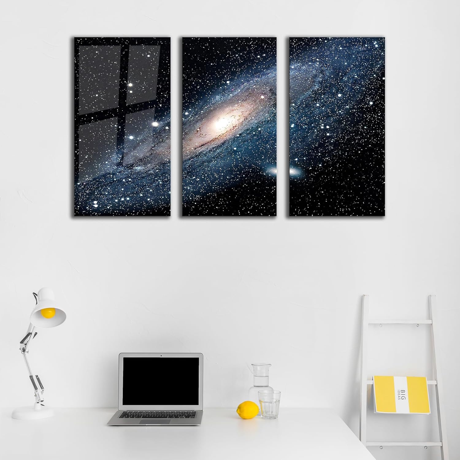 SpiritualHands Andromeda Space Galaxy Glass Wall Art Painting for Living Room, Tempered Glass Modern Prints Decor, Large Vivid Color Panel for Bedroom, Kitchen, or Office