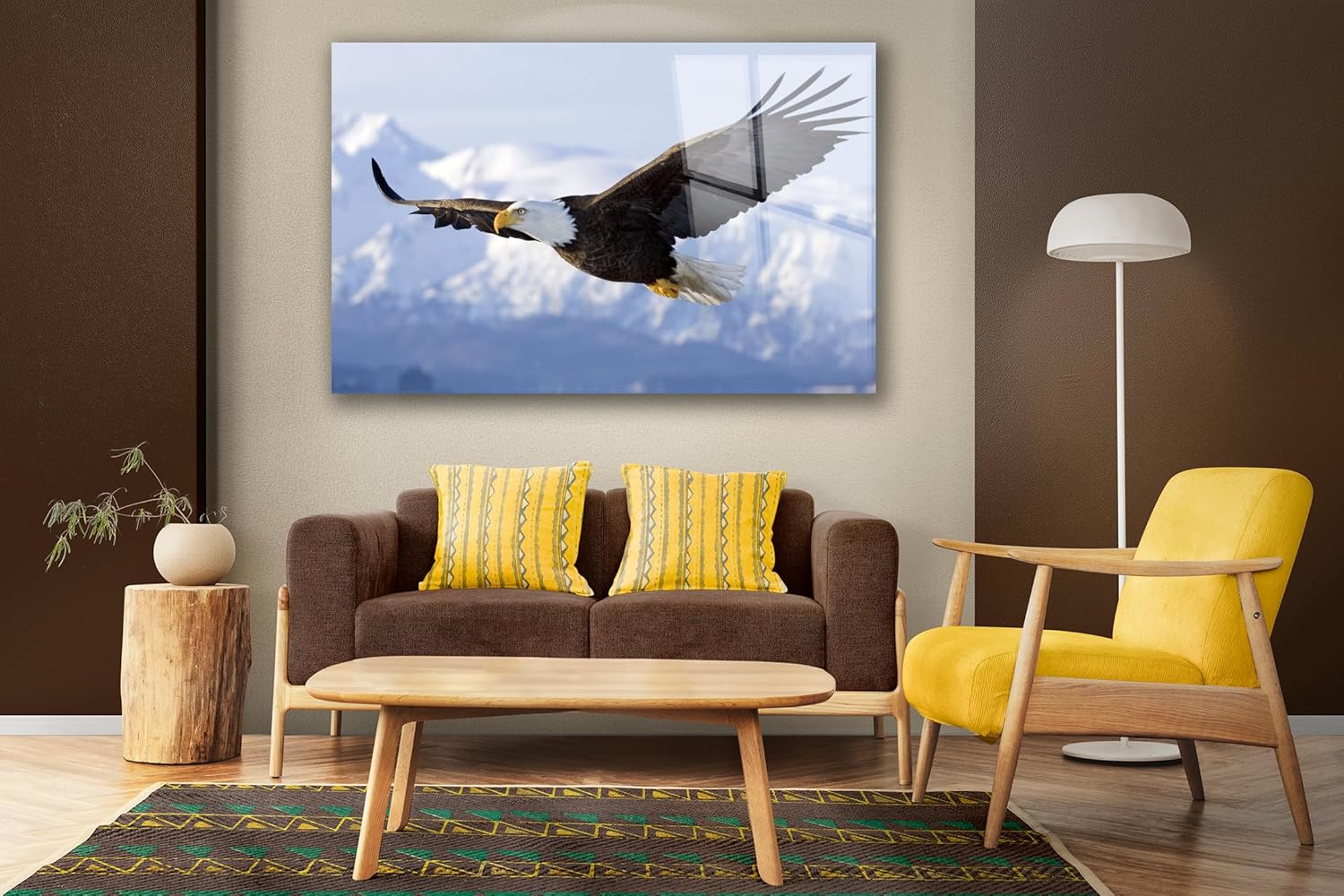 SpiritualHands Eagle Printed Tempered Glass Wall Art Painting for Living Room, Tempered Glass Modern Prints Decor, Large Vivid Color Panel for Bedroom, Kitchen, or Office