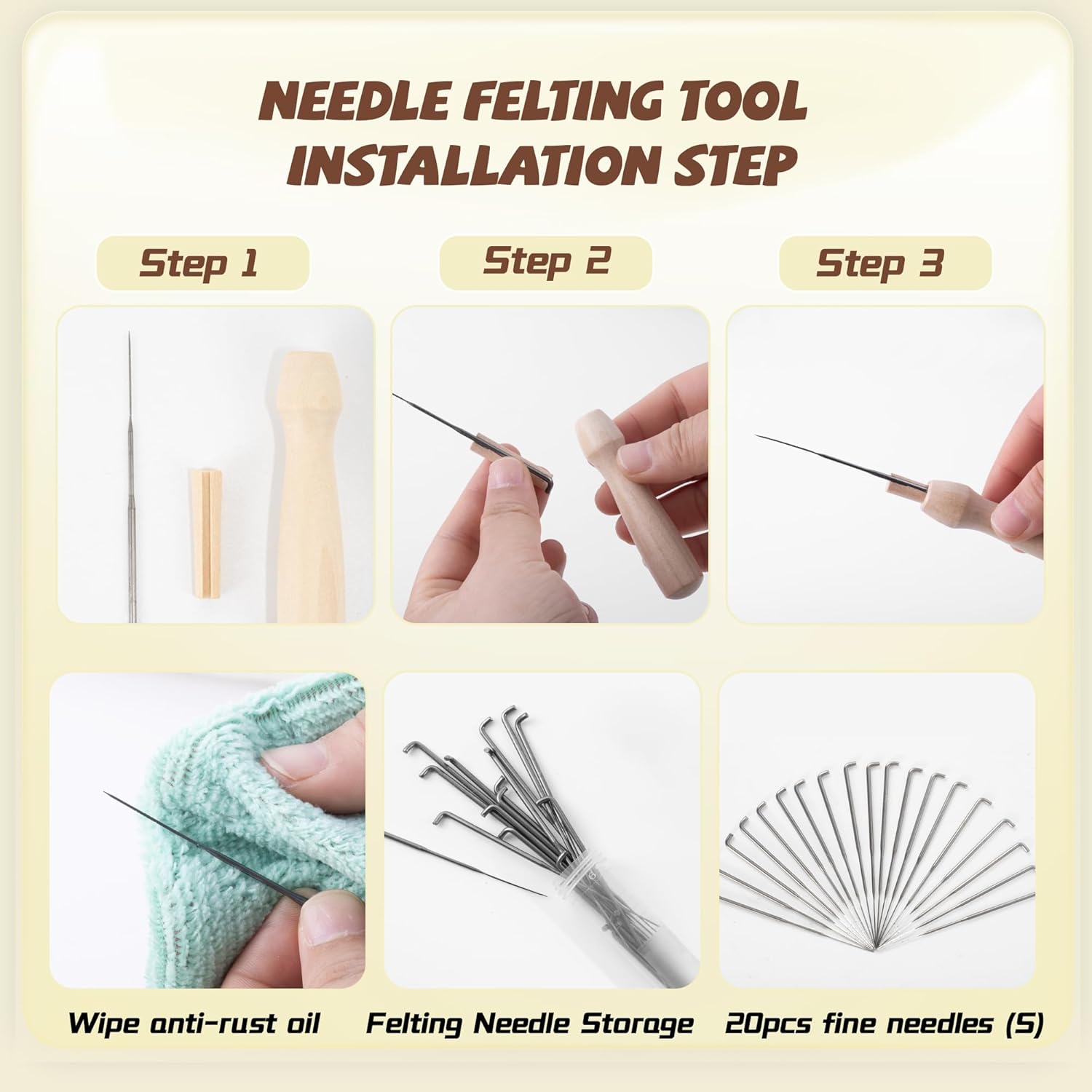 - 【Wonderful Felting Tool 】This needle felting kit is perfect choice for your friends or family.gifted 1pc felting needle 1pc instruction .time saving money saving no need to buy other felting kit and waste time to learn how to felt.