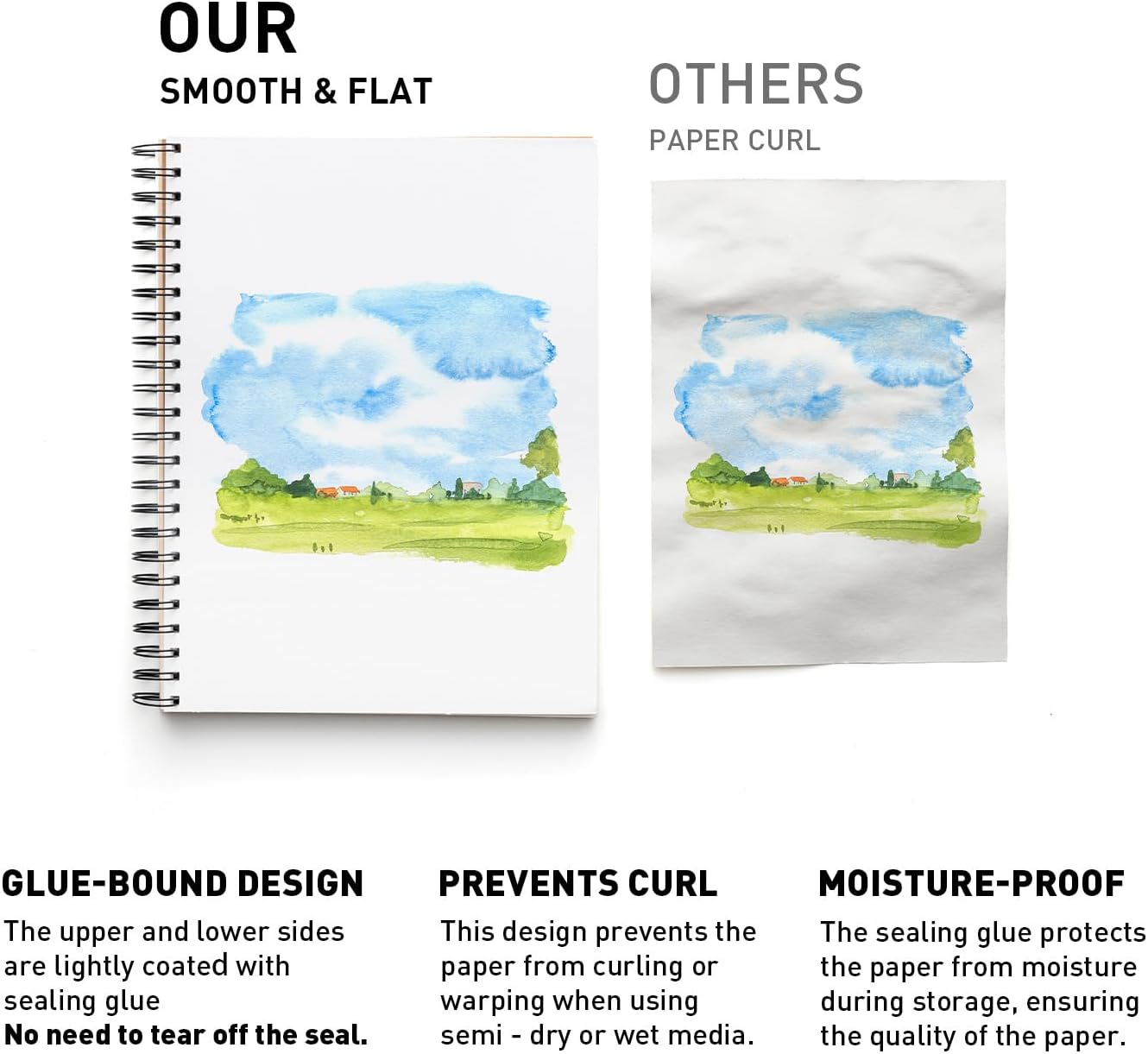 - Premium Mixed Media Paper – Features 180g/m² heavyweight paper that works beautifully with gouache, acrylic, ink, markers, and pencils—minimizes bleed-through and buckling for professional results.