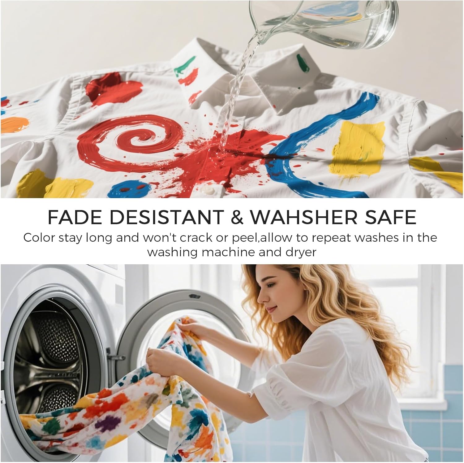 - 【Waterproof and fade-proof】: Fabric paints is waterproof, dry your design within 6-8 hours, but remember to wait until fully cured before washing to prevent smudging halos and to ensure that your artistic expression lasts for years to come.