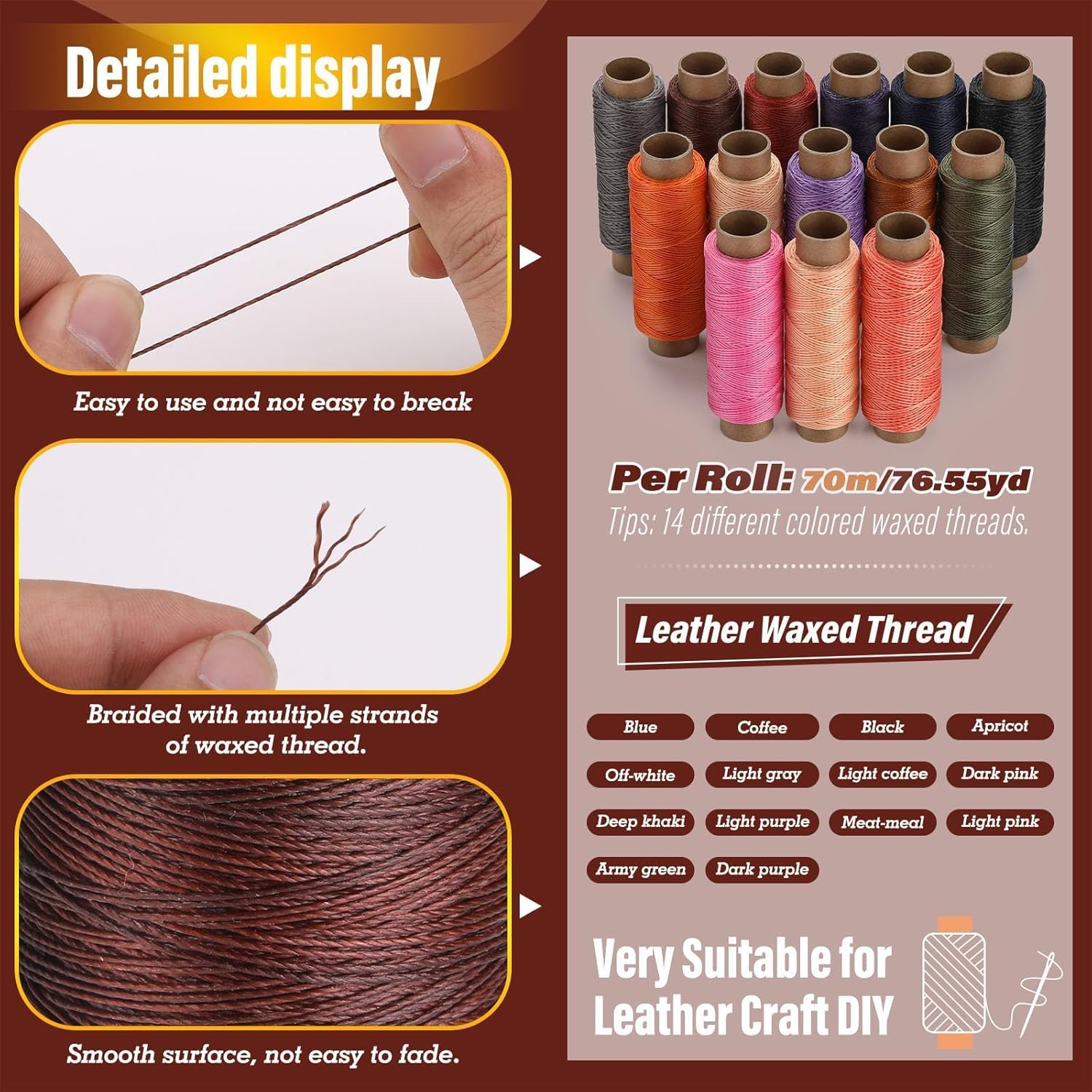 - Wide Range of Application: Leather sewing thread is ideal for sewing leather bags, wallets, all kinds of leather, etc. Whether you want to use it for dream catchers, macrame, baseballs, wind chimes, or repair sofa seats, our sewing thread kit is the perfect choice for you, in the domain of interior decor and outdoor restoration, round waxed thread provides the finishing touch