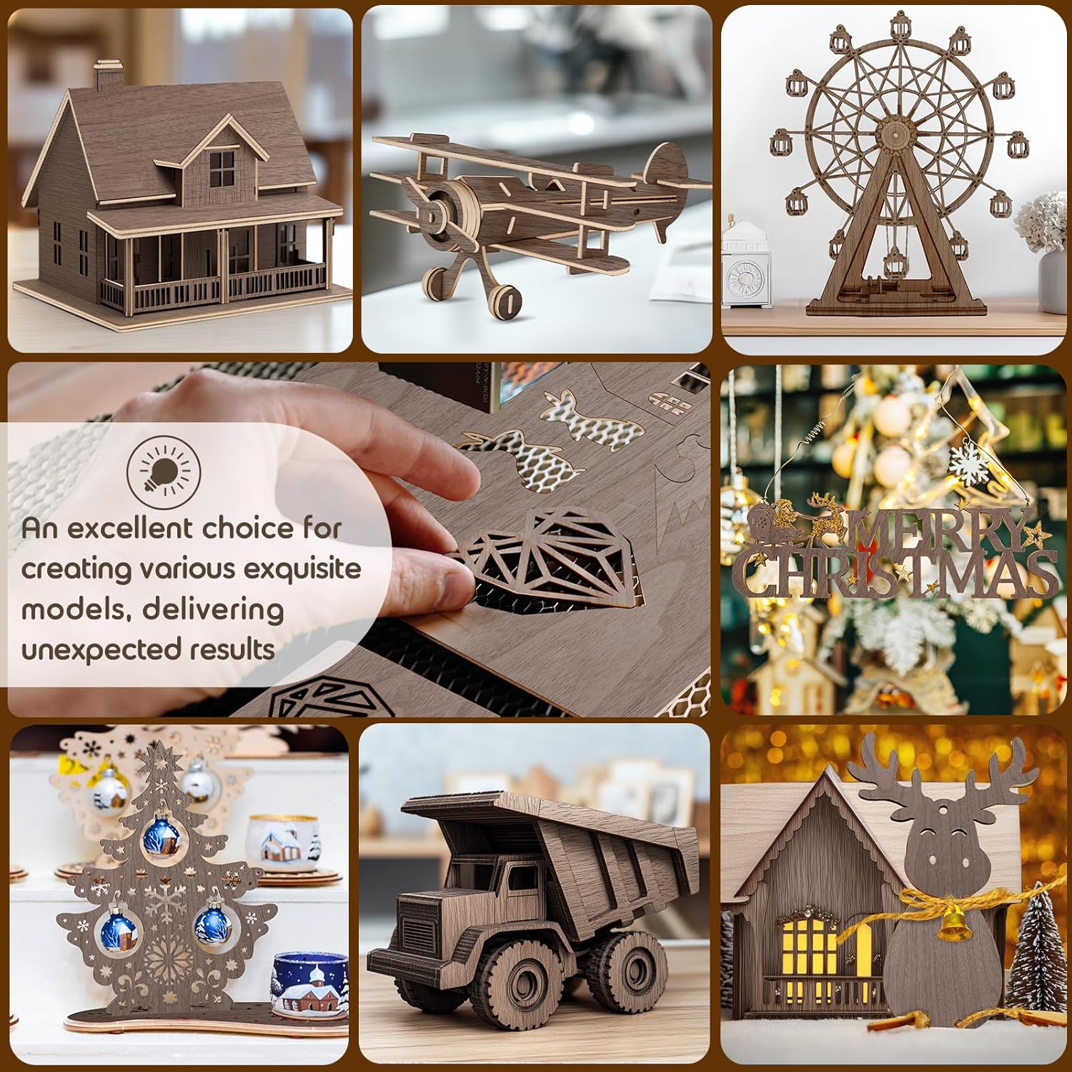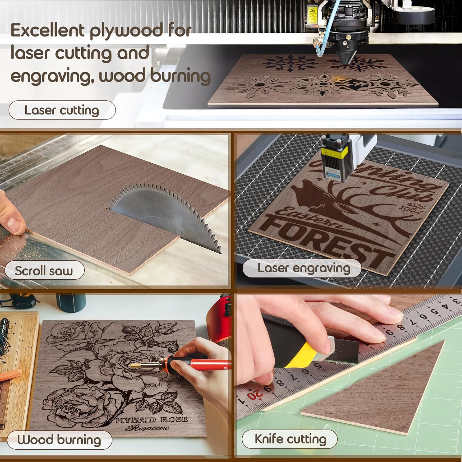 - MULTIFUNCTIONAL: It works perfectly with laser engraver/cutter machines, scroll sawing, perfect for ornaments projects, aircraft, architectural model making, scale models, wood burning, boats, laser projects, staining, painting and etc