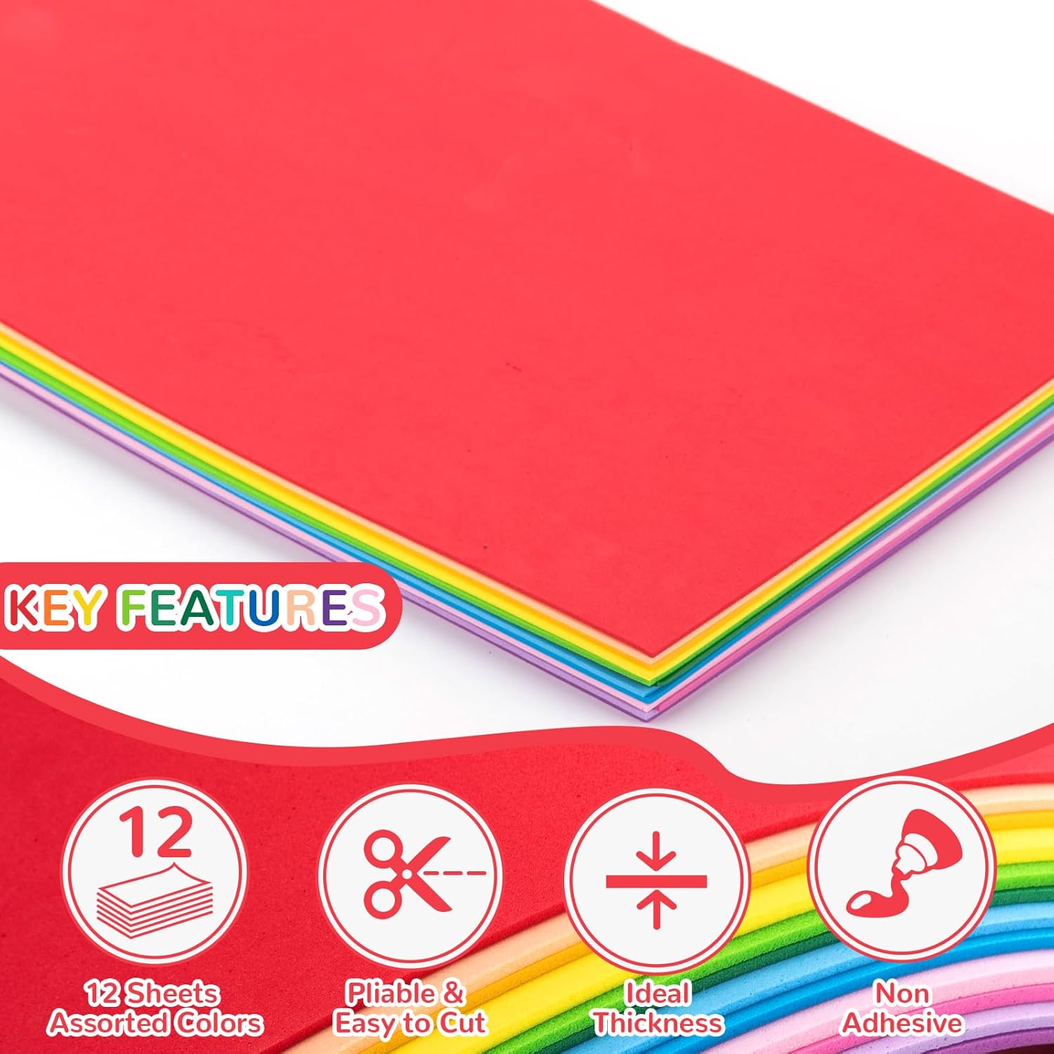 - 【Package Includes】 With 12 foam sheets in vibrant rainbow colors, there are endless ways to get creative with your arts and crafts projects at home or in the classroom!