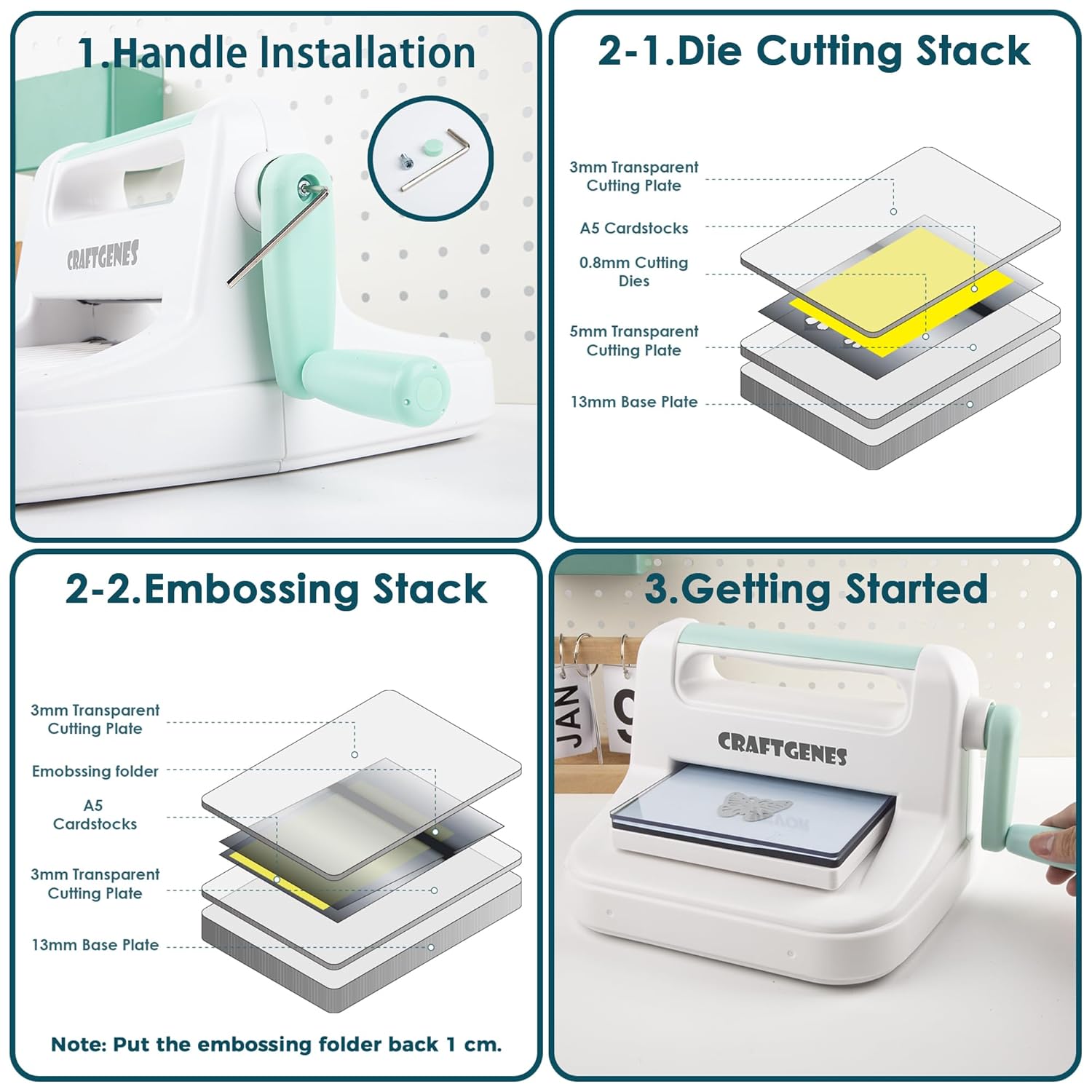 - Simple and Effective Operation: Easy-to-follow instructions make crafting a breeze: For embossing, use 1 x 13mm basic plate + 1 x 3mm plate + paper + embossing folder + 3mm plate. For die cutting, use 1 x 13mm basic plate + 1 x 5mm plate + paper + die cuts+ 3mm plate (Tip: Move the embossing folder back 1 cm).