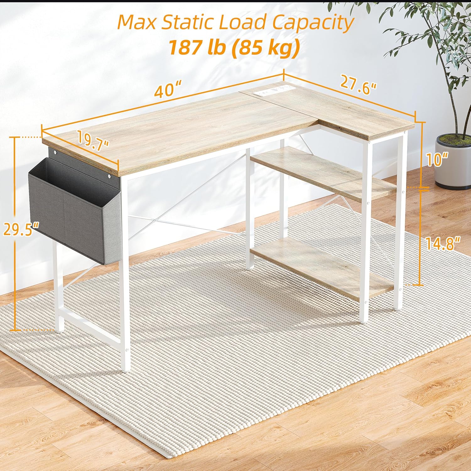 - L Shape Desk with Power Outlets - The l desk has built-in power outlets featuring two AC outlets, one USB port, and one Type-C port, simplifying charging and cutting down on cable clutter.