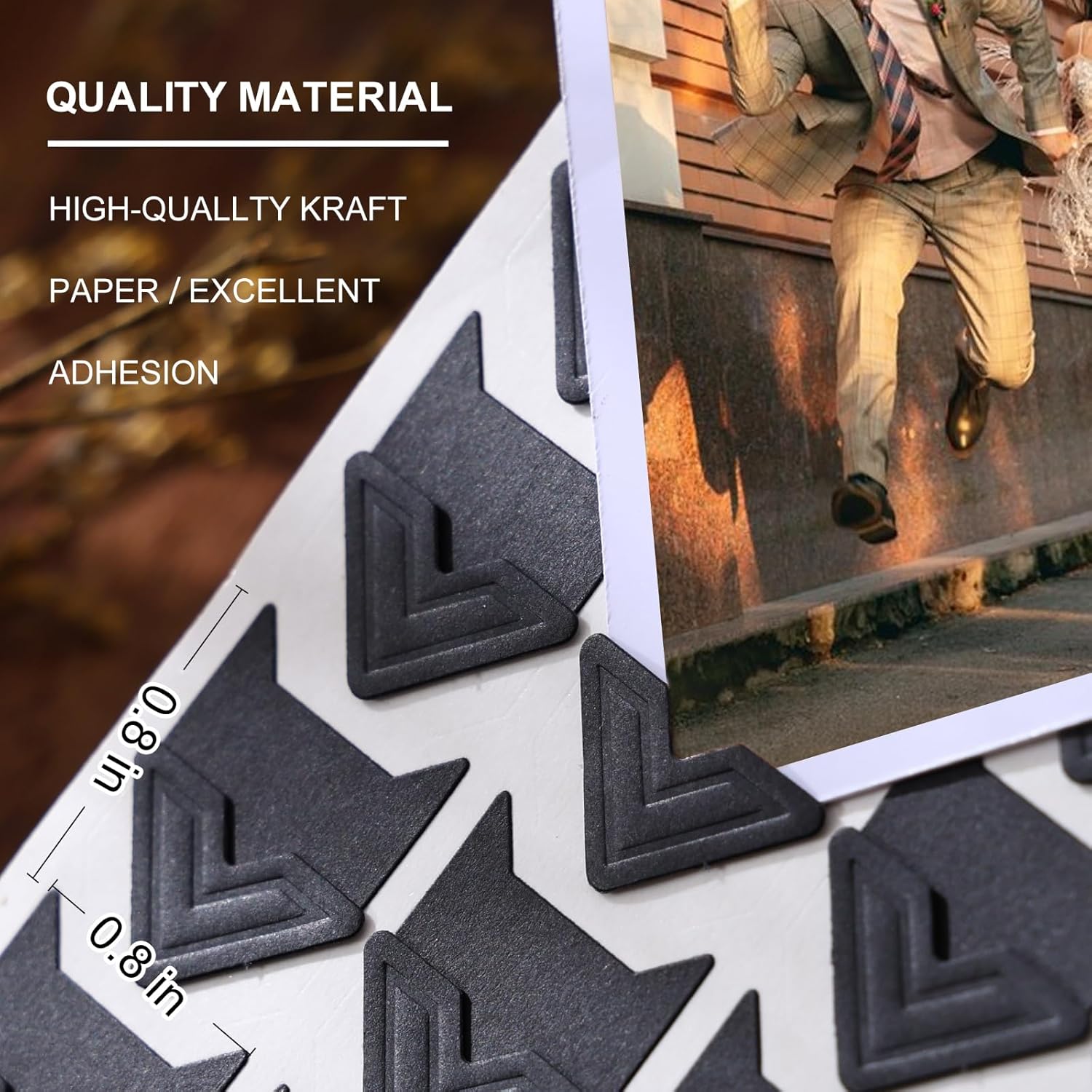 - 4.QUALITY MATERIAL: Our photo corners adopt HIGH-QUALITY kraft paper material, . You can trust these self adhesive corners to securely fix your photos in place, preventing them from falling off or getting damaged, can serve you for a long time
