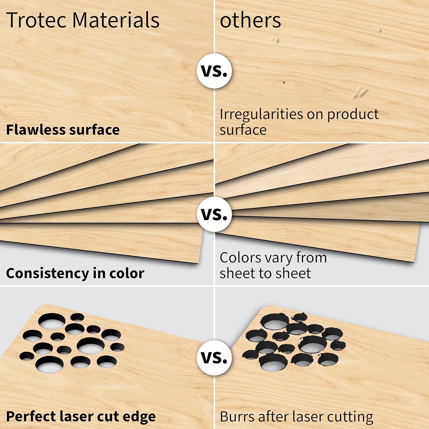 Trotec TroLase | 12"x12"x1/16", 8 Pcs | Maple/Black | 2 Ply | Modified Acrylic | Laser Engraving Double Color Plastic Sheet | Engraving Blanks for Laser, Saw, Guillotine | Made in USA