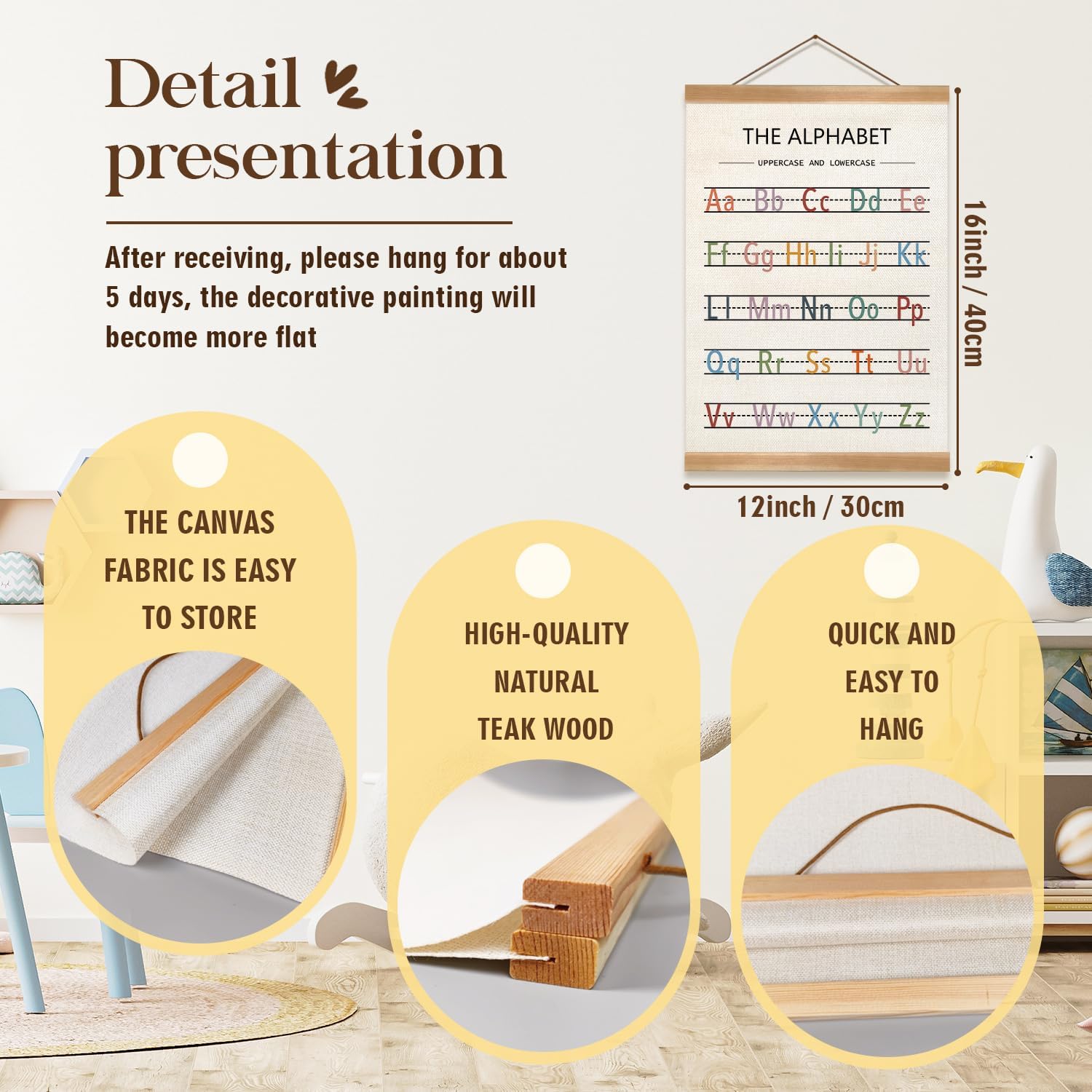 - Alphabet numbers poster hanger frame, nursery wall decor, ABC banner poster wall art, alphabet banner wall hanging decor for toddler playroom nursery, this set combines vibrant colors with an easy-to-read layout. It's designed to spark curiosity and support early learning for children