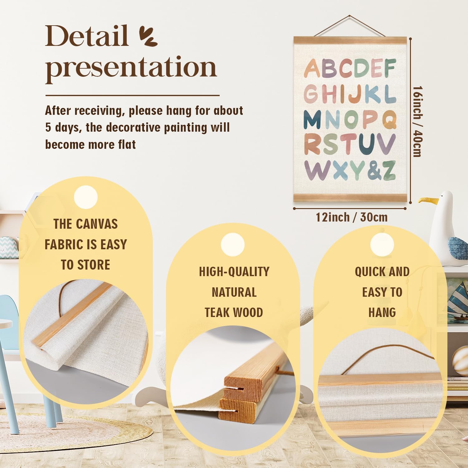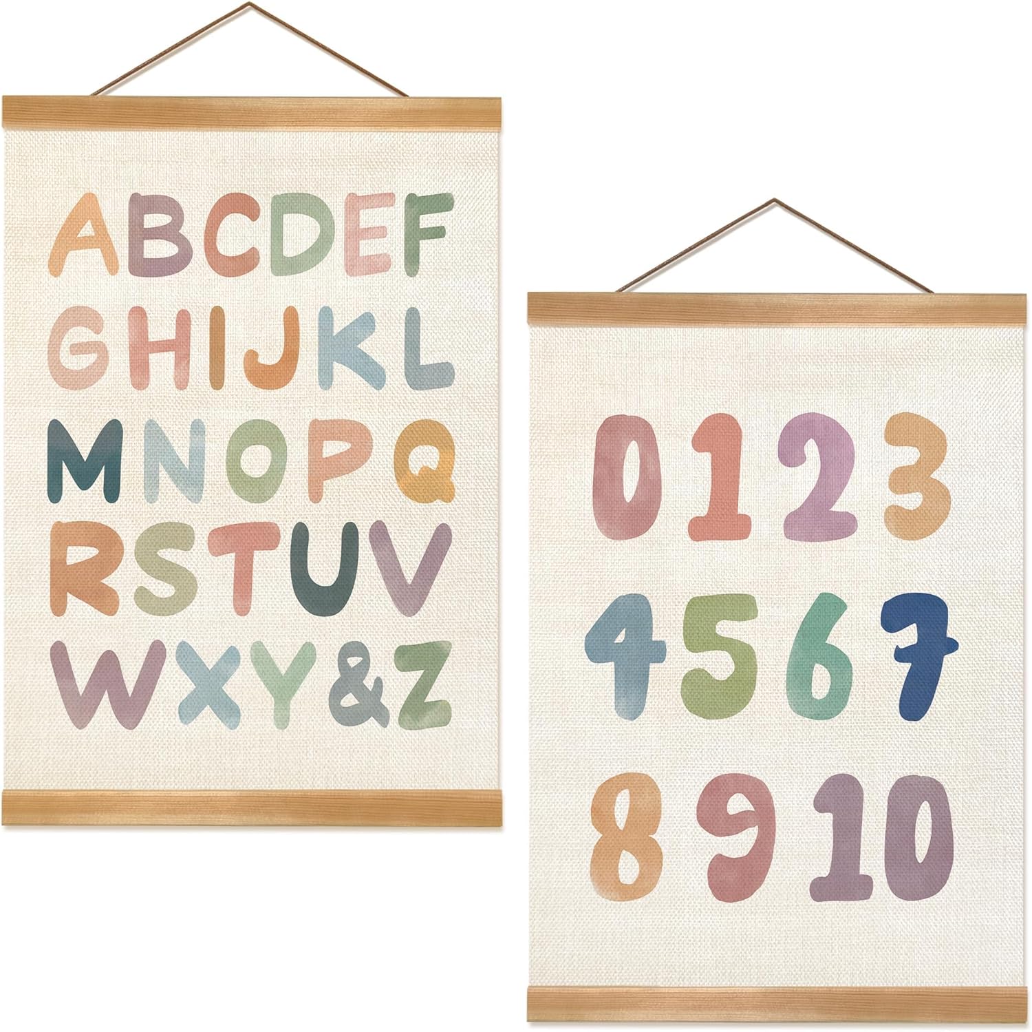 - Alphabet numbers poster hanger frame, nursery wall decor, ABC banner poster wall art, alphabet banner wall hanging decor for toddler playroom nursery, this set combines vibrant colors with an easy-to-read layout. It's designed to spark curiosity and support early learning for children
