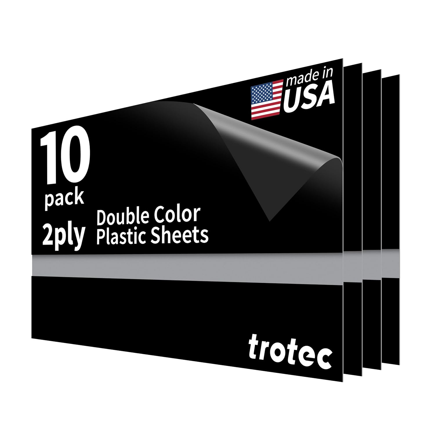 Trotec TroLase Lights | 24"x12"x1/250"(0.1mm thick) | Adhesive-Backed Flexible Laser Engraving Sheet/Film for Decal & Label | Double Color Plastic Sheet for Engraving | Black/Silver | 10pcs