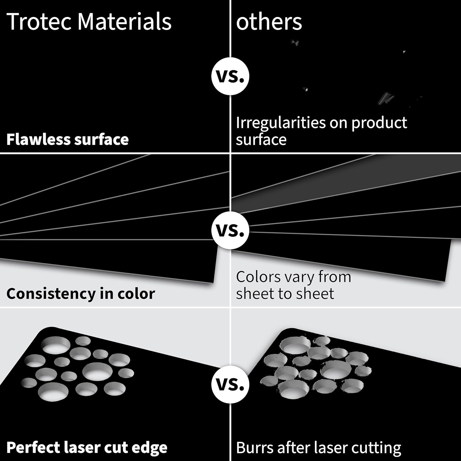 - Highest surface quality and color consistency: Rely on a perfect surface quality without any irregularities or bubbles. We ensure maximum color consistency in 2 color acrylic sheets for laser cutting, sheet by sheet, order by order. This leads to less scrap and easily reproduced jobs that save you time and money with engraving blanks and laser engraving material.