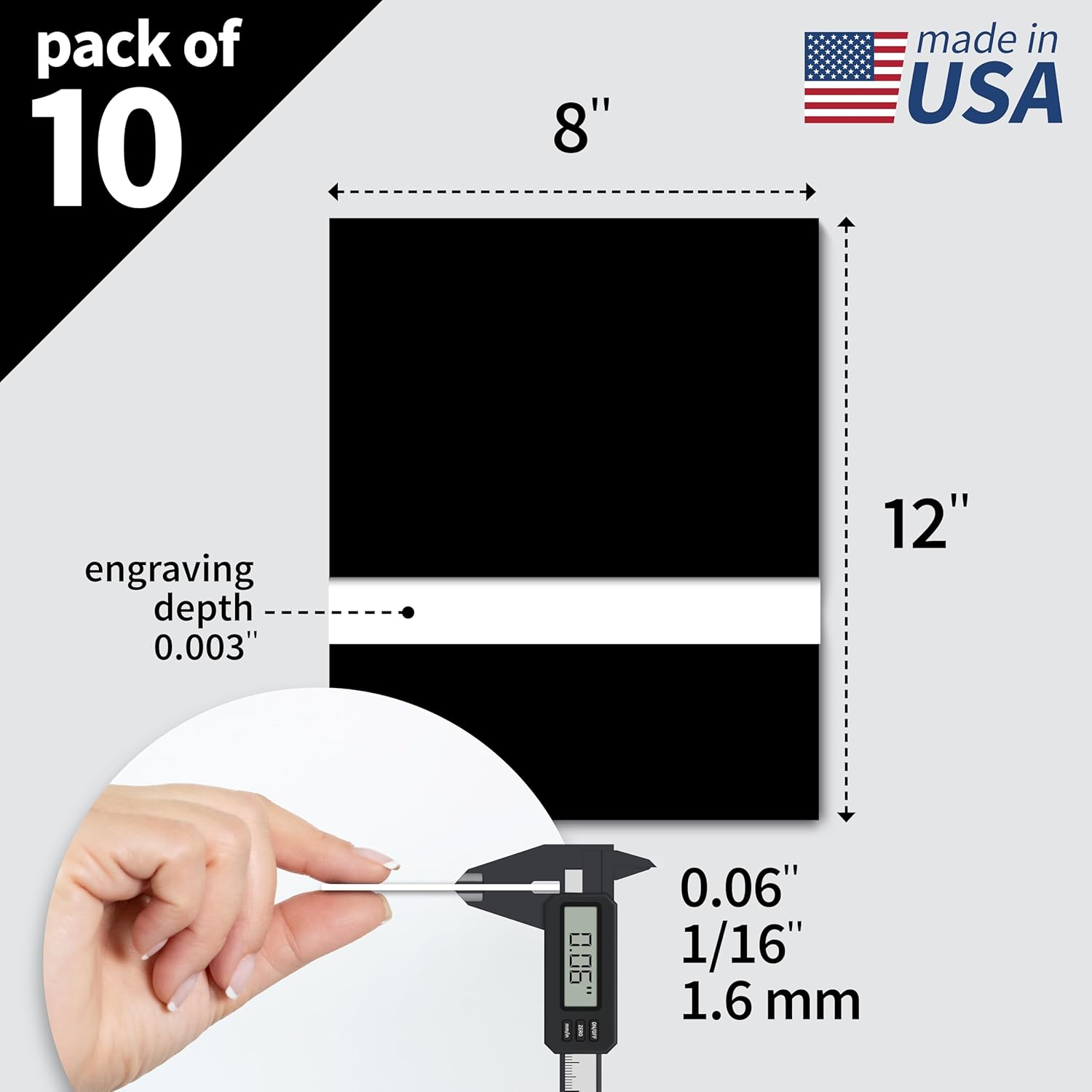 Trotec TroLase | 8"x12"x1/16", 10 Pcs | Black/White | 2 Ply | Modified Acrylic | Laser Engraving Double Color Plastic Sheet | Engraving Blanks for Laser, Saw, Guillotine | Made in USA