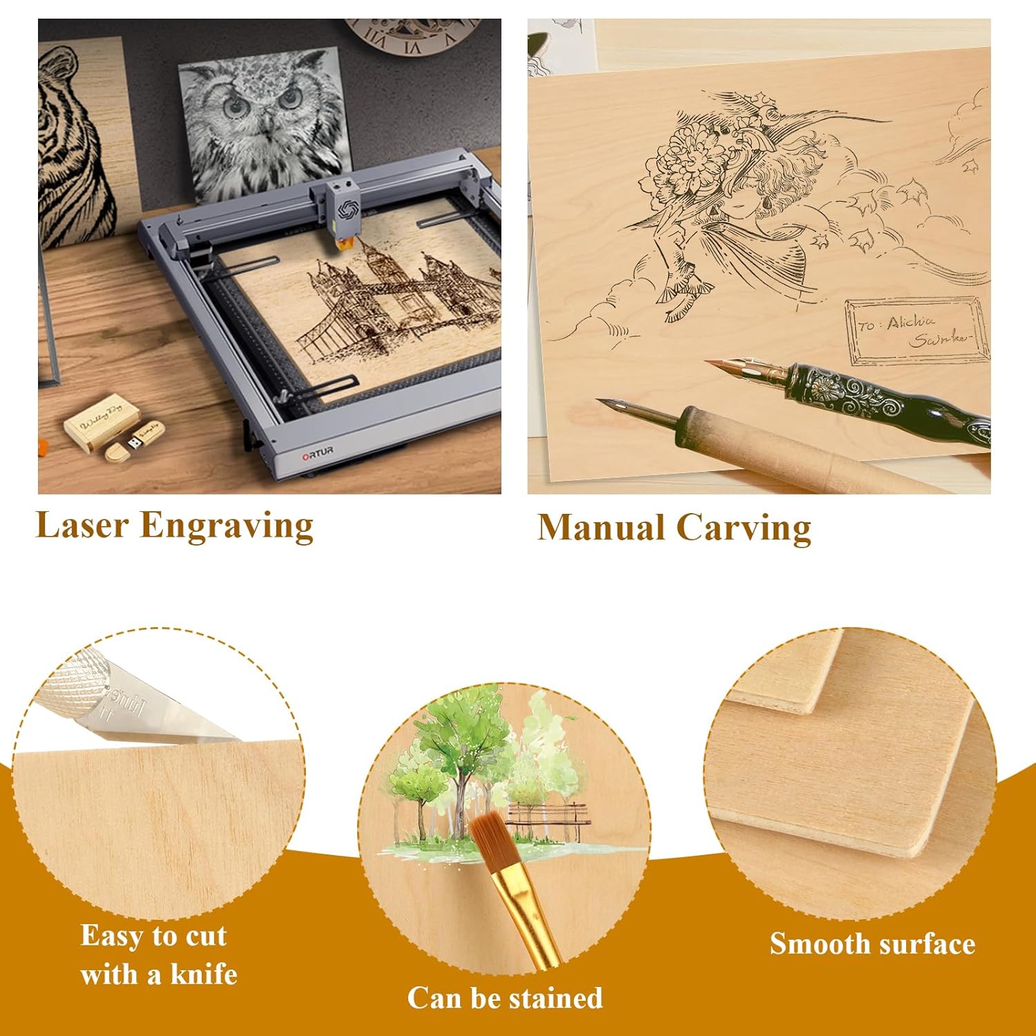 - Easy to Cut - 12 packs 1/8 wood for laser cutting are 1/8'' thick, easy to cut, and perfect for cutting and engraving with utility knives, scroll saws, and laser or craft knives.