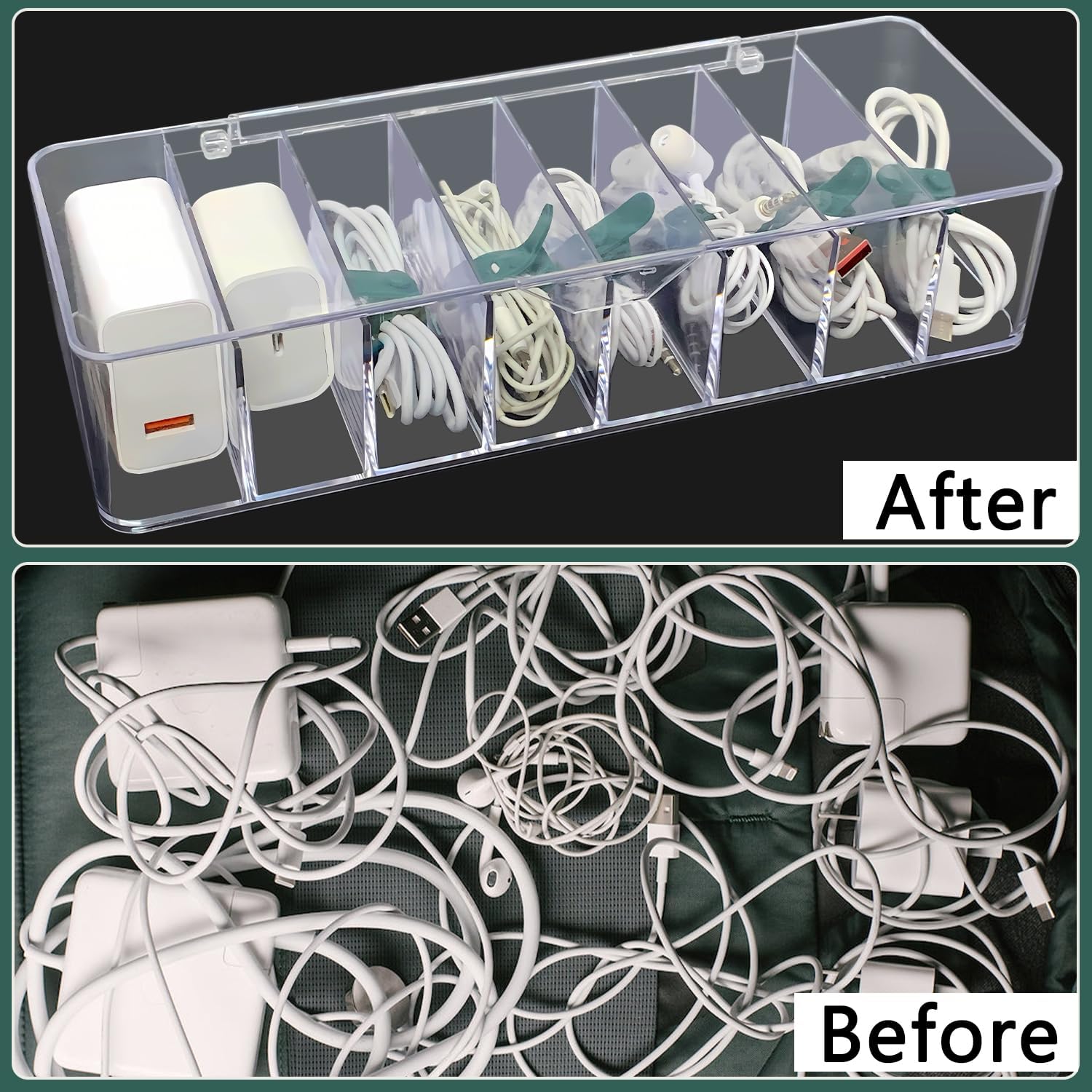 - Practical Design: Cord organizer has 8 compartments, each compartment measures 9 x 3 x 5.5 cm, and the fixed partition design prevents the contents of the box from running around, making it easy to store