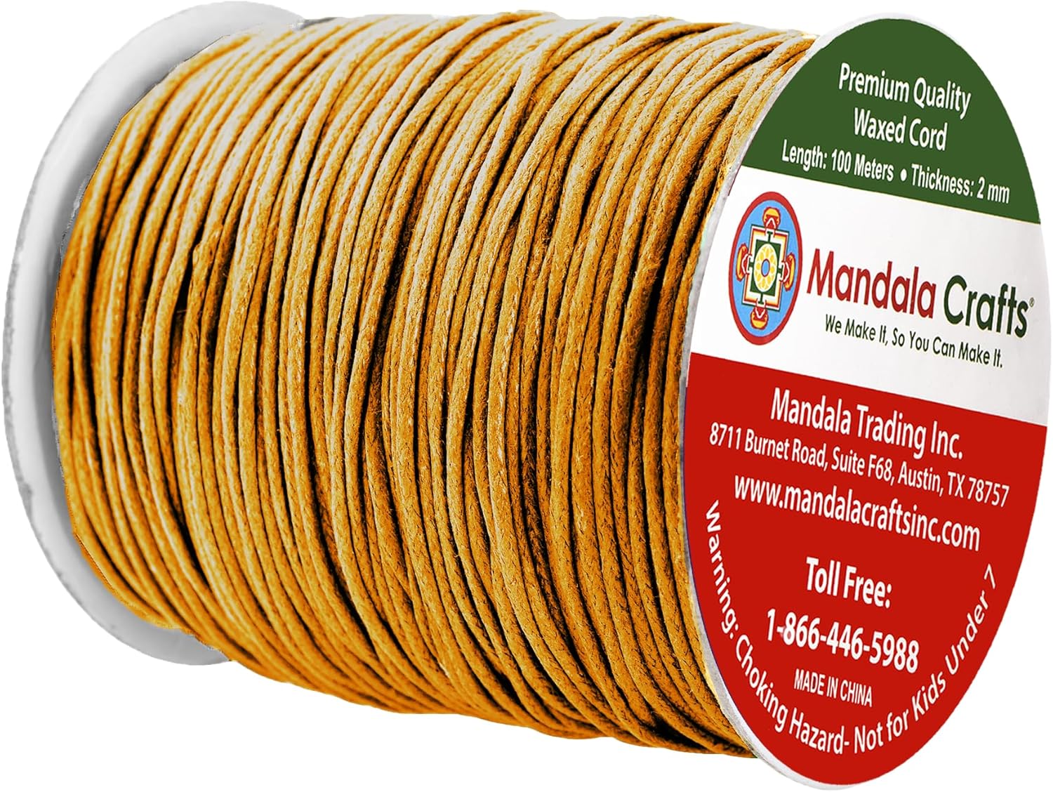 Mandala Crafts 2mm 109 Yards Dark Goldenrod Cotton Waxed Cord for Jewelry Making Bracelet Cord Waxed String - Beading String Thread Jewelry Cords for Necklaces String
