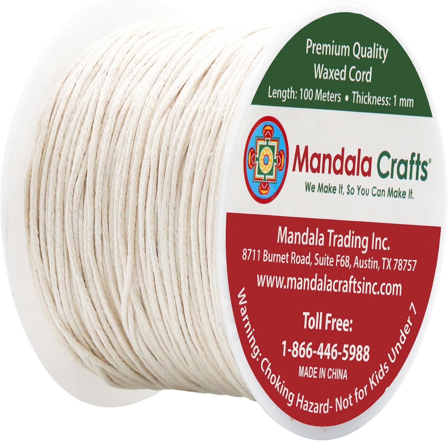 Mandala Crafts 1mm 109 Yards Ivory Cotton Waxed Cord for Jewelry Making Bracelet Cord Waxed String - Beading String Thread Jewelry Cords for Necklaces String