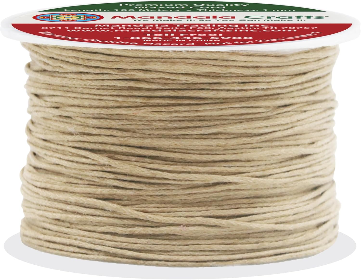 Mandala Crafts 1mm 109 Yards Natural Cotton Waxed Cord for Jewelry Making Bracelet Cord Waxed String - Beading String Thread Jewelry Cords for Necklaces String
