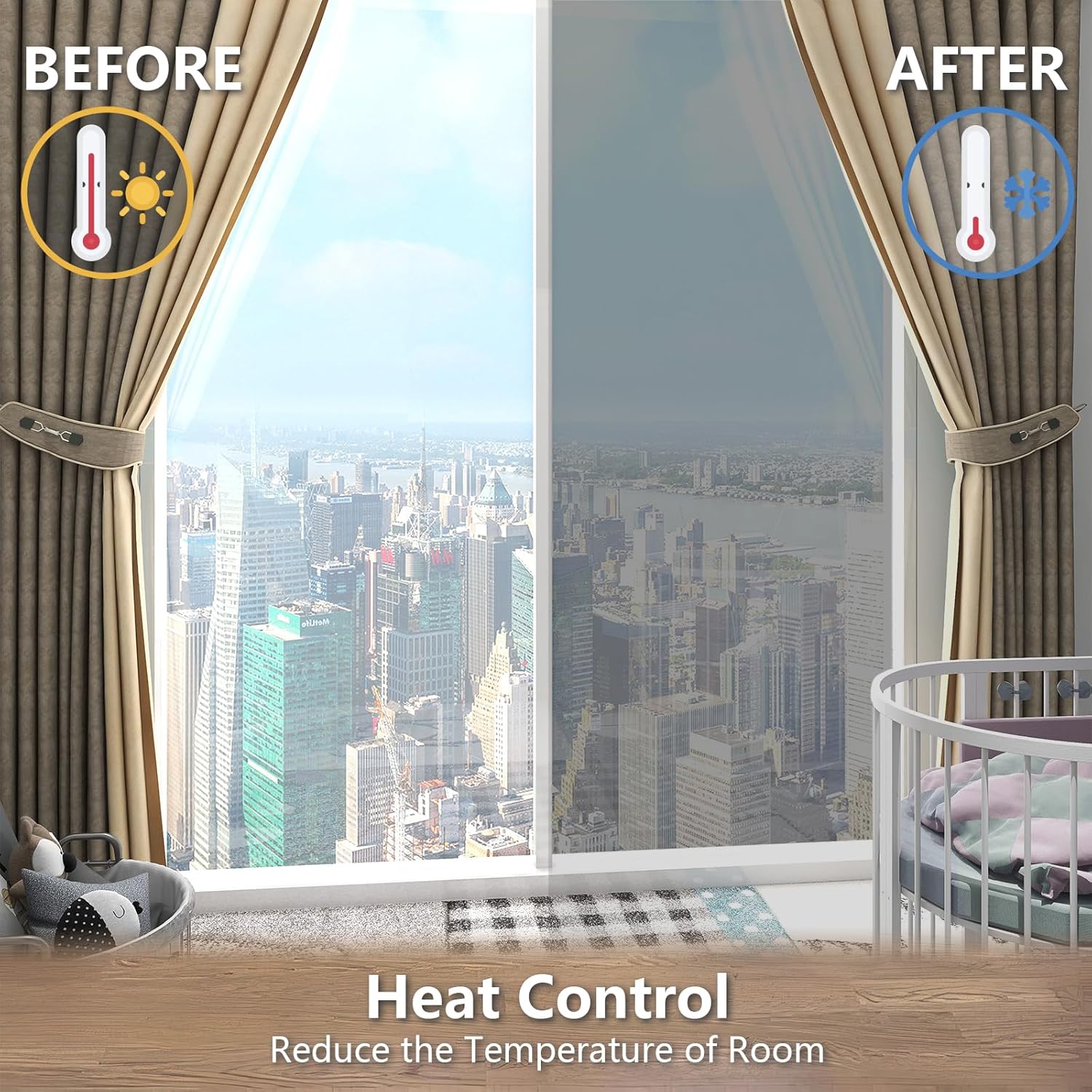 - Heat and UV Protection: Our reflective daytime privacy window film has both UV protection (up to 99%) and cooling and sun protection functions, which can effectively block the sun's heat and harmful UV rays, protect indoor furniture and flooring, and improve spatial comfort
