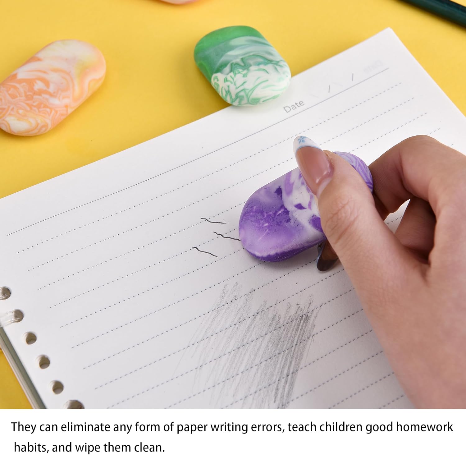 - You will get 19 kinds of durable marble oval pencil erasers, which are made of rubber and easy to remove stains.