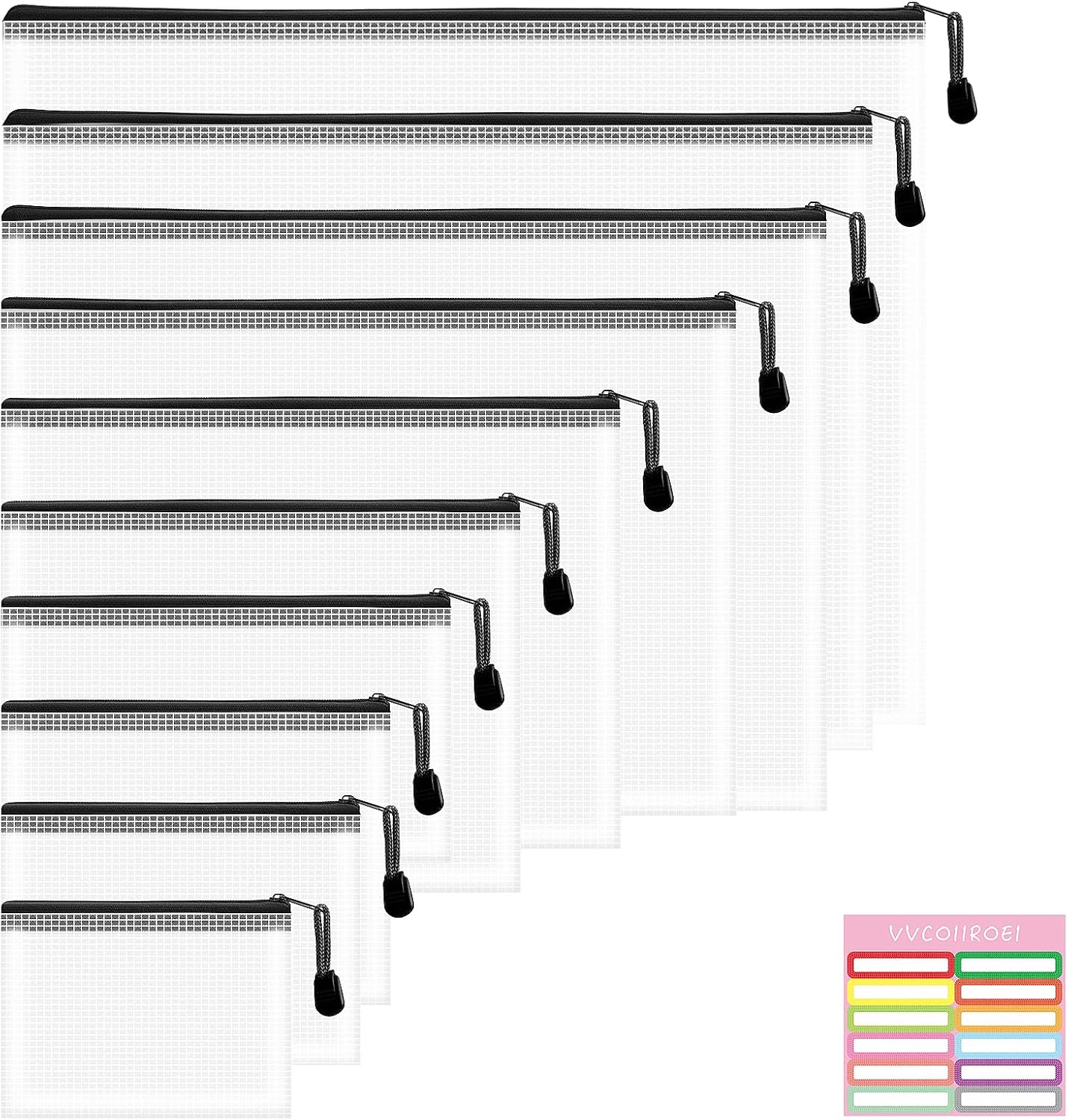 - 10 Pieces Zipper Bags: You will get 10pcs mesh zipper pouch bags in 10 different sizes, 1*B3, 1*A3, 1*B4, 1*A4, 1*B5, 1*A5, 1*B6, 1*A6, 1*Bills, 1*B8, keep your belongings organized with our plastic zipper pouches, perfect for toy storage bags, board game bags, organizer bags and zipper pouches for classroom. These mesh zipper bags are available in 8 sizes, are transparent and durable, will keep your items neatly organized and easily accessible.