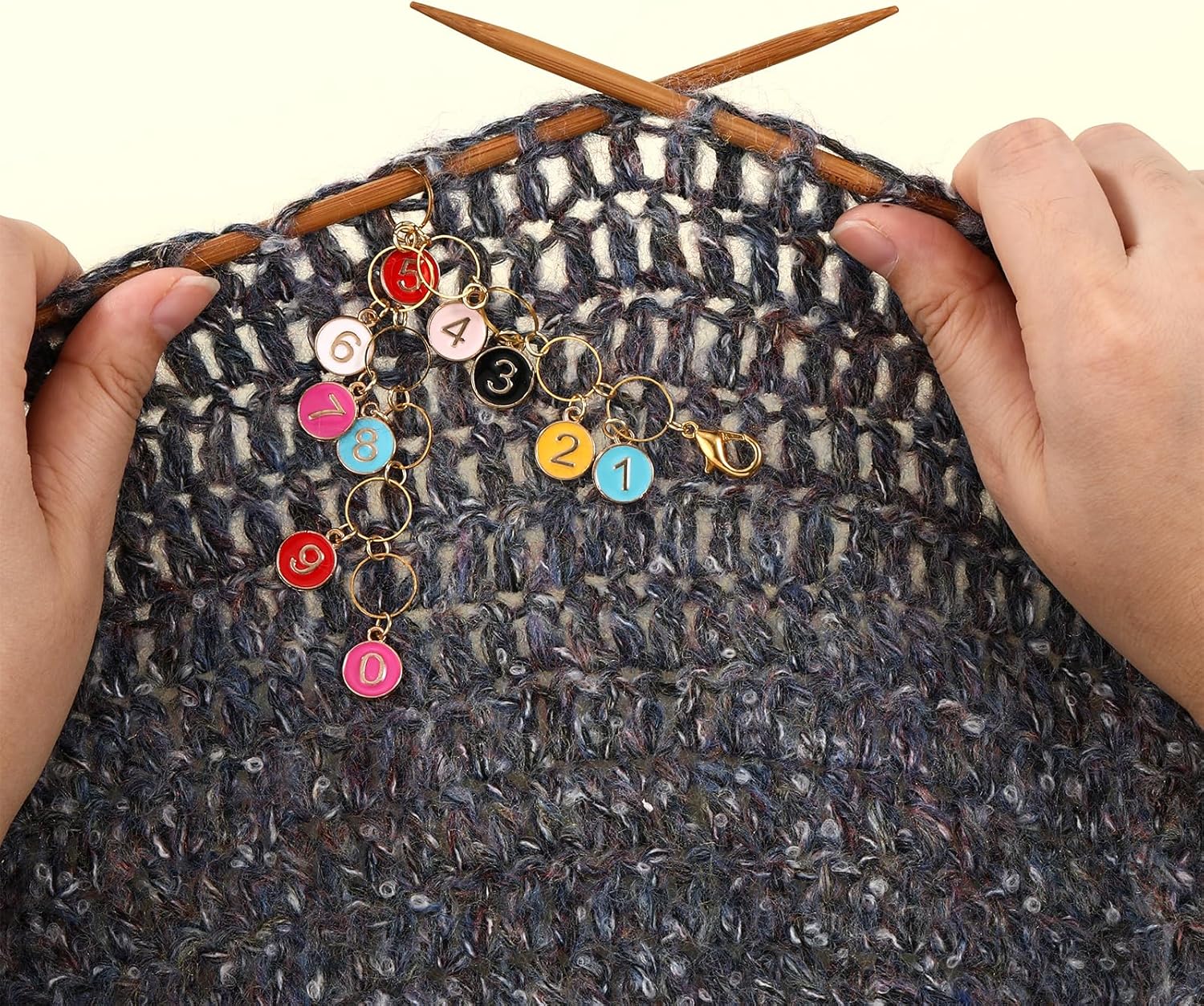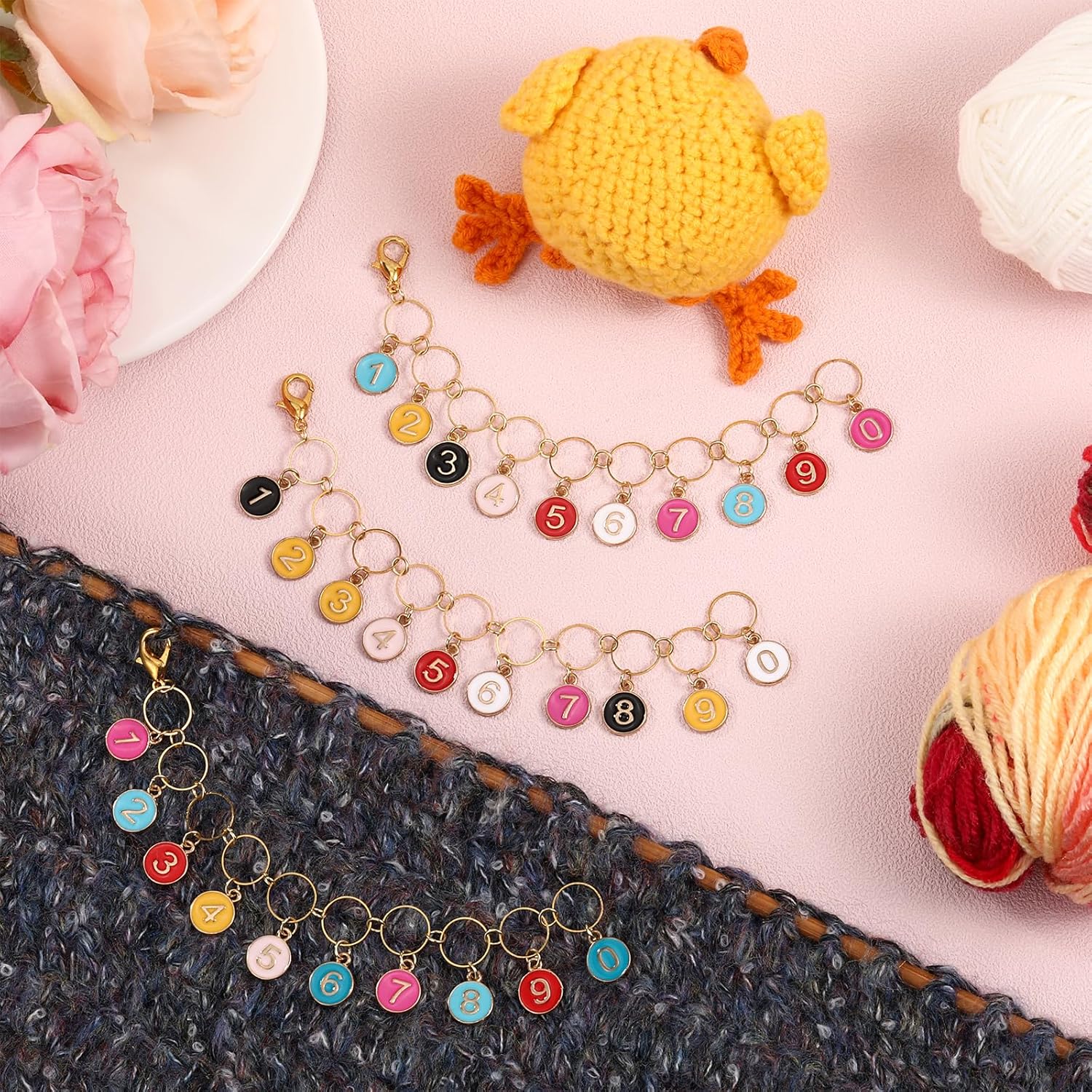 - Colorful Enamel Pendants: Flat round pendants featuring vibrant enamel designs with numbers 0-9, allowing for easy stitch counting and vibrant creativity.