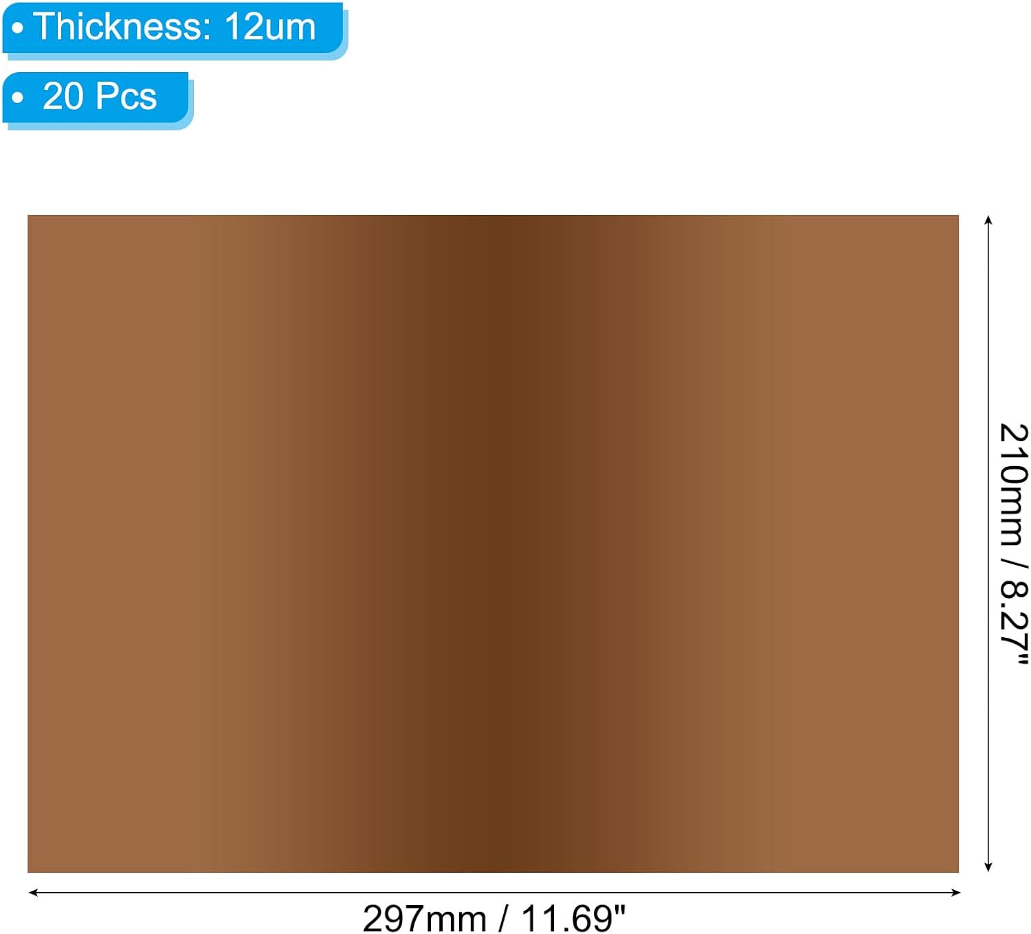 - Specification: Color: Brown; Size: 297 x 210mm / 11.69 x 8.27 inch (L*W); Paper Thickness: 12um; Material: PET Plastic; Packing list: 20 Sheets x Hot stamping foil paper