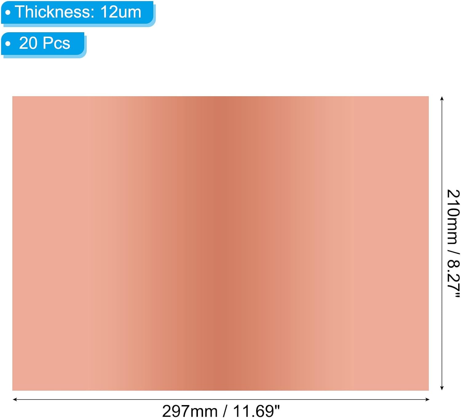 - Specification: Color: Rose Gold; Size: 297 x 210mm / 11.69 x 8.27 inch (L*W); Paper Thickness: 12um; Material: PET Plastic; Packing list: 20 Sheets x Hot stamping foil paper
