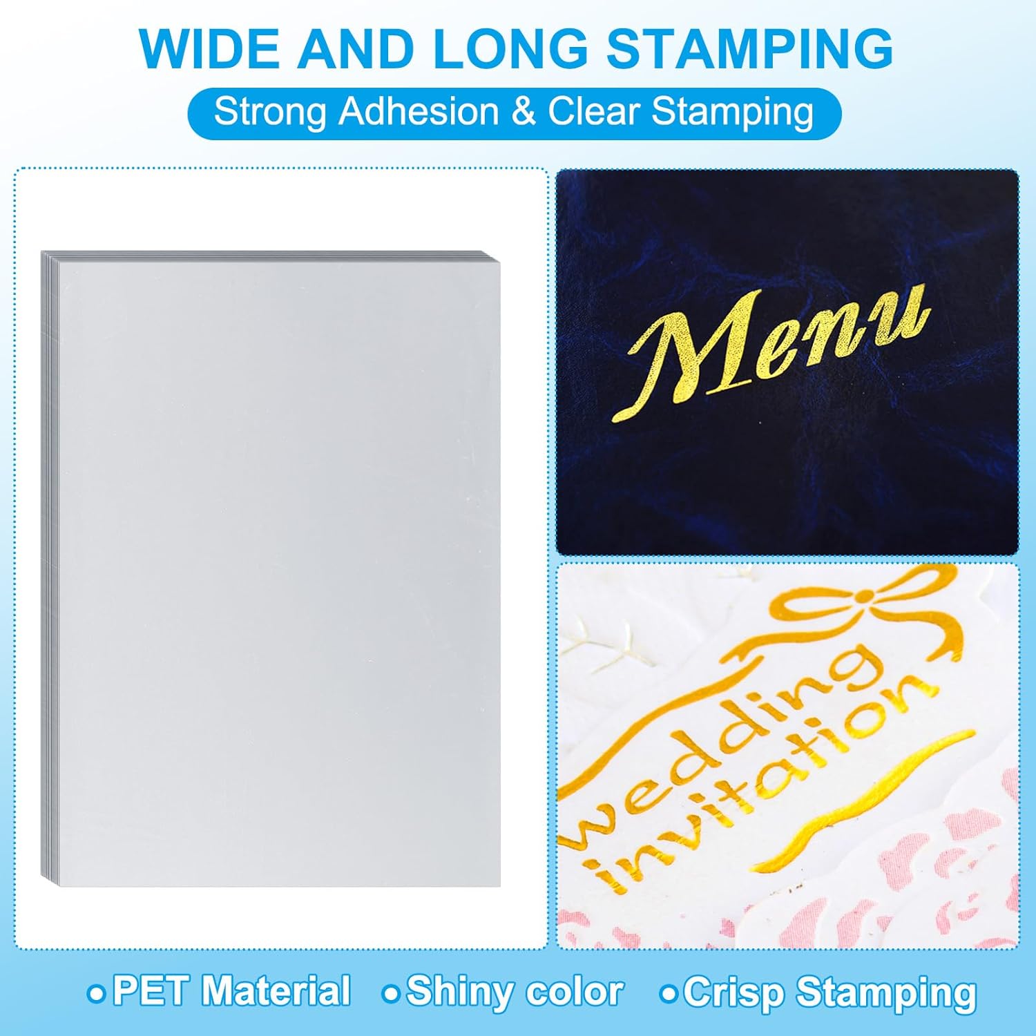- Specification: Color: Matt Silver; Size: 297 x 210mm / 11.69 x 8.27 inch (L*W); Paper Thickness: 12um; Material: PET Plastic; Packing list: 20 Sheets x Hot stamping foil paper