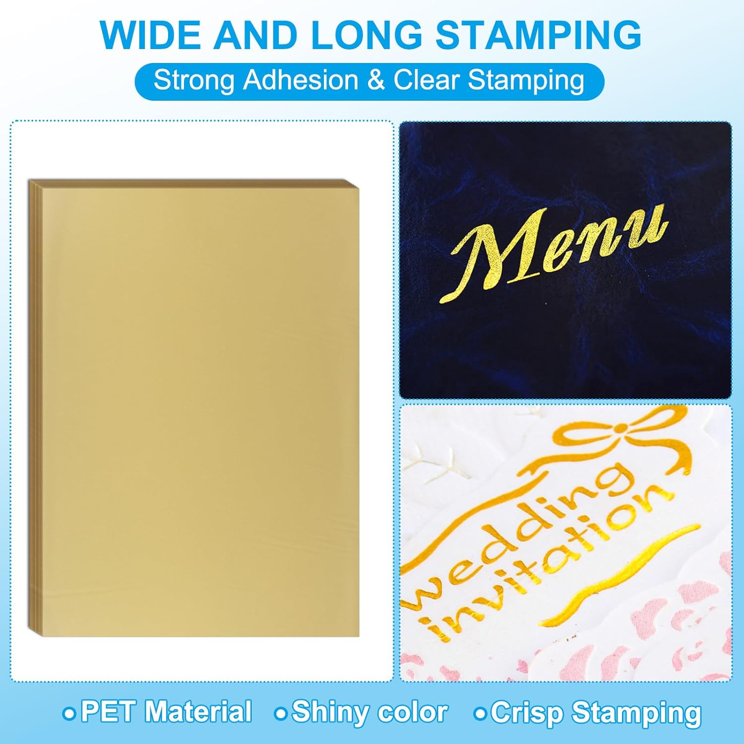 - Specification: Color: Matt Gold; Size: 297 x 210mm / 11.69 x 8.27 inch (L*W); Paper Thickness: 12um; Material: PET Plastic; Packing list: 20 Sheets x Hot stamping foil paper
