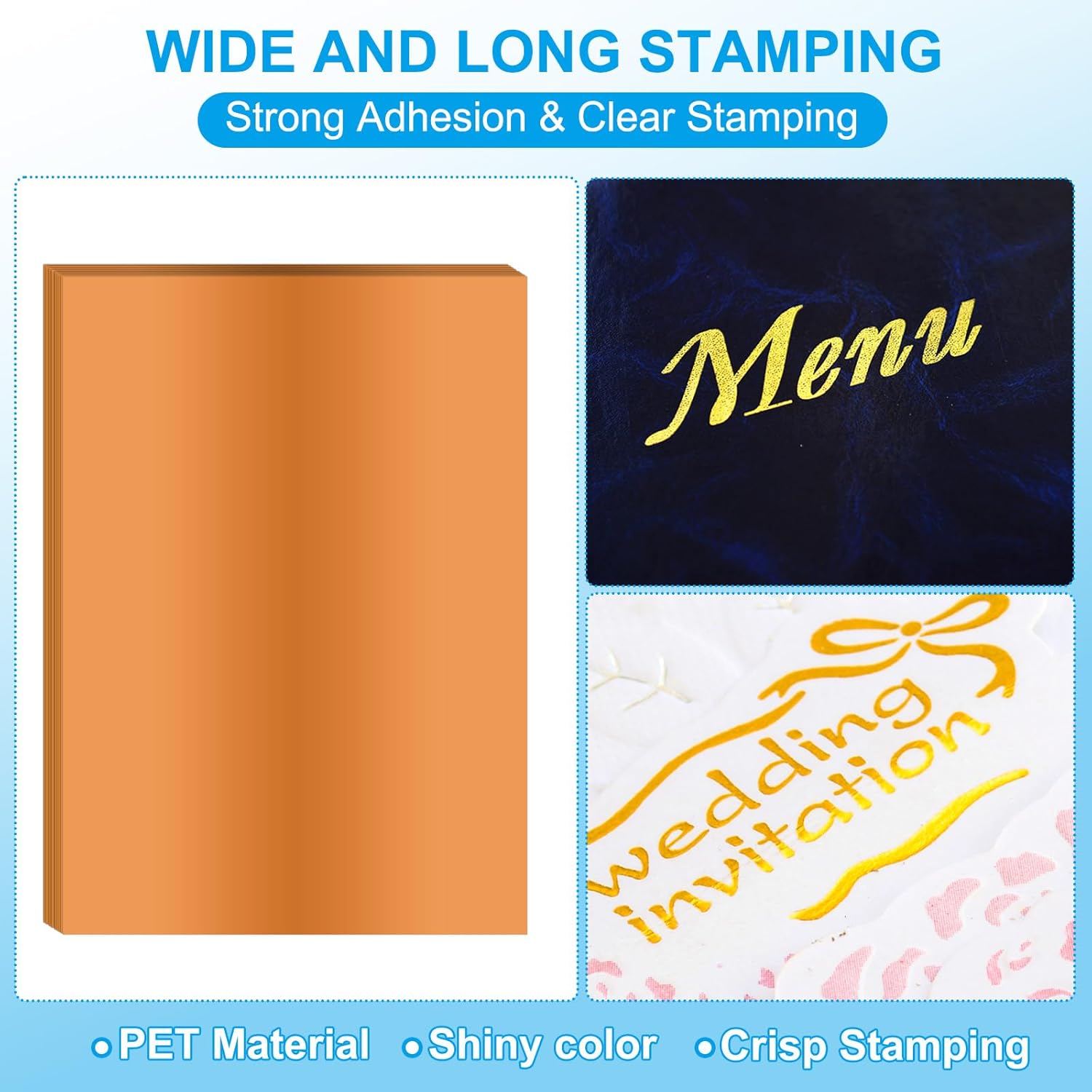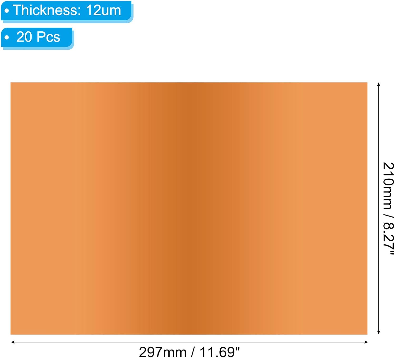 - Specification: Color: Bronze; Size: 297 x 210mm / 11.69 x 8.27 inch (L*W); Paper Thickness: 12um; Material: PET Plastic; Packing list: 20 Sheets x Hot stamping foil paper