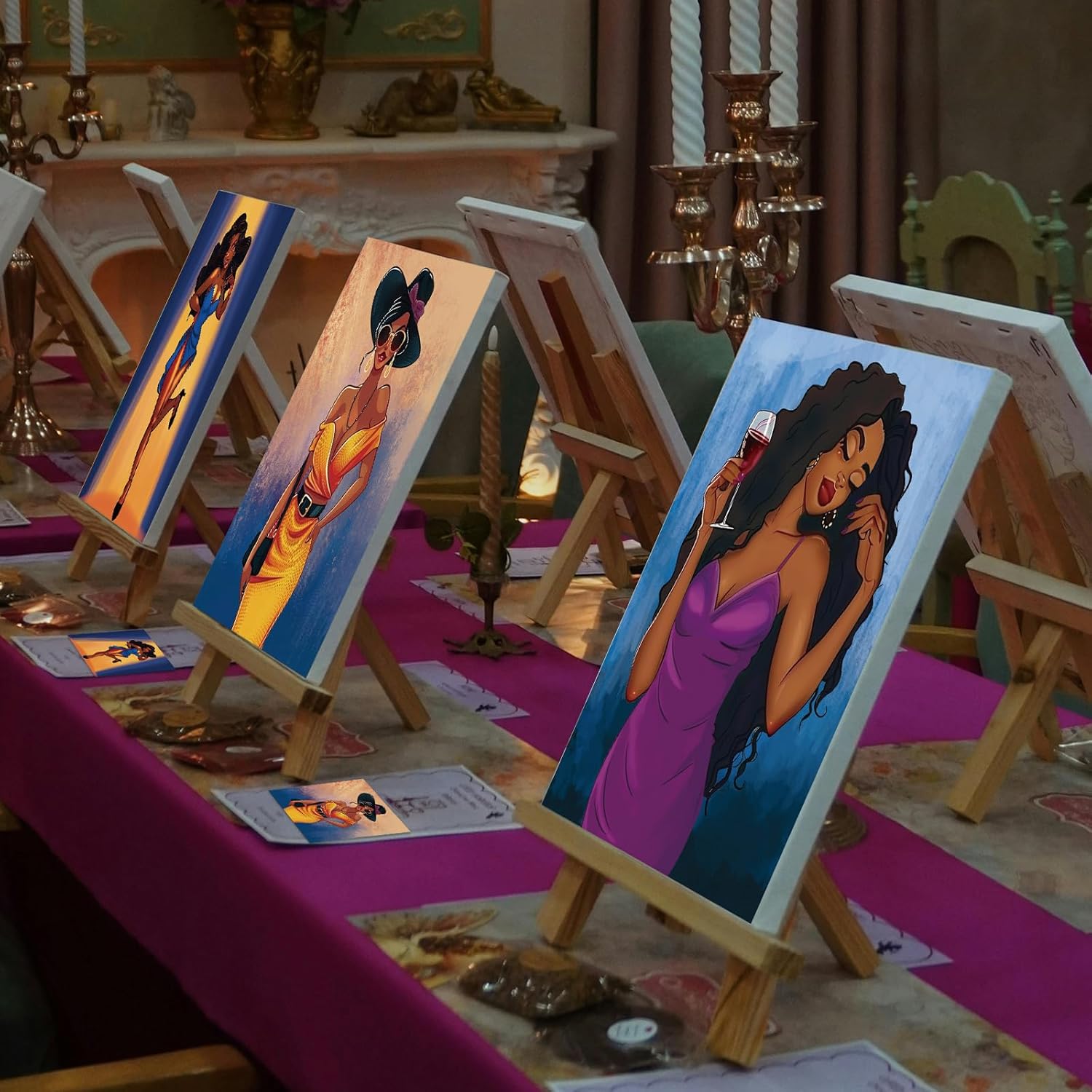 Cholemy 36 Pcs Paint and Sip Kit for Adults 8''x10'' Pre Drawn Canvas for Painting DIY Afro Acrylic Painting Kit Wood Easel Brushes Date Night Bulk for Christmas Party Gifts(Charming Lady)