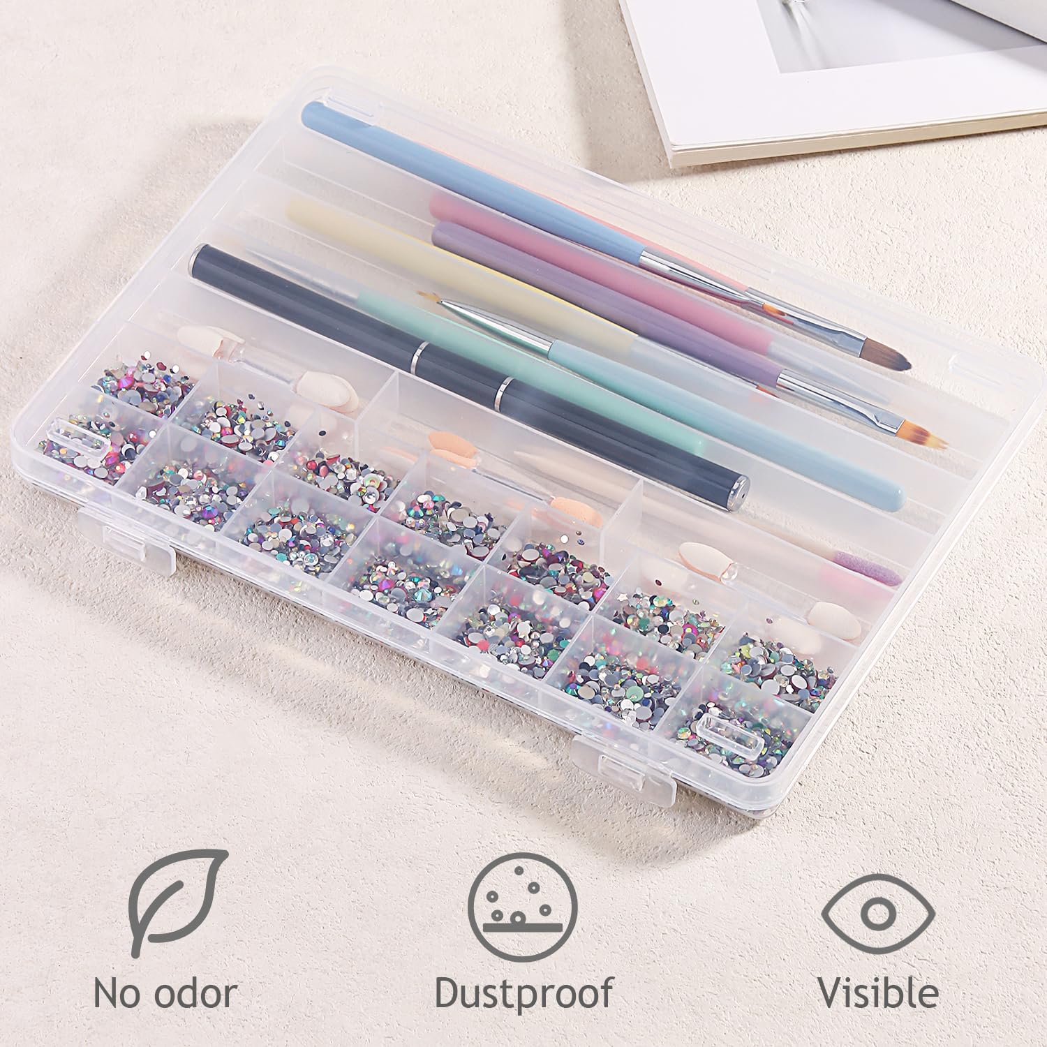 - Wide application: The organizer box with dividers is perfect for storing nail accessories/jewelry/beads/crafts/fishing tackle/screws/small parts/diamond painting art tools and more