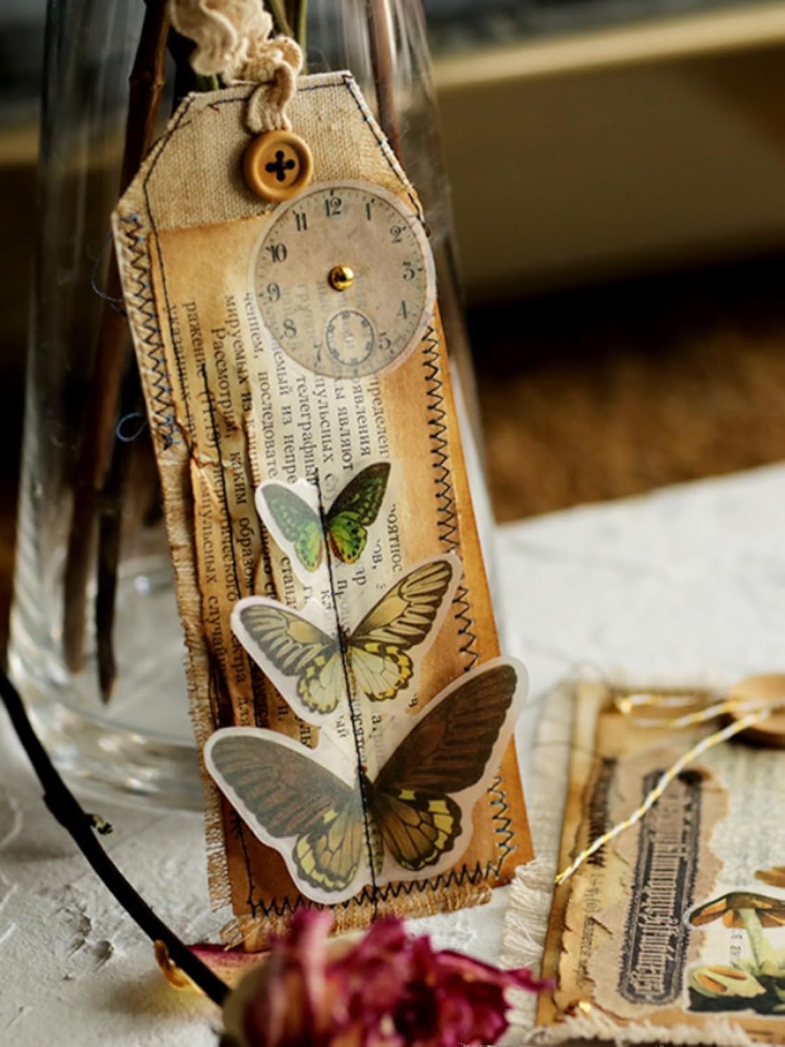 Vintage Vellum Stickers Floral Plants Elements Scrapbooking Supplies Flowers Botanic Natural Translucent Paper Self-Adhesive Junk-Journal Items (Little Butterfly)
