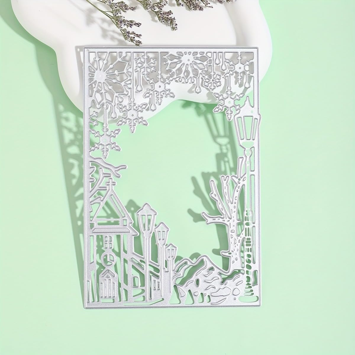 Lapoo Festivals Metal Cutting Die for Scrapbooking - Durable, Cut Stencils for DIY Scrapbook Photo Album Decorative Paper Card, Card Making Supplies, Embossing (Snowflake Street View 3.9 x 5.7 in)