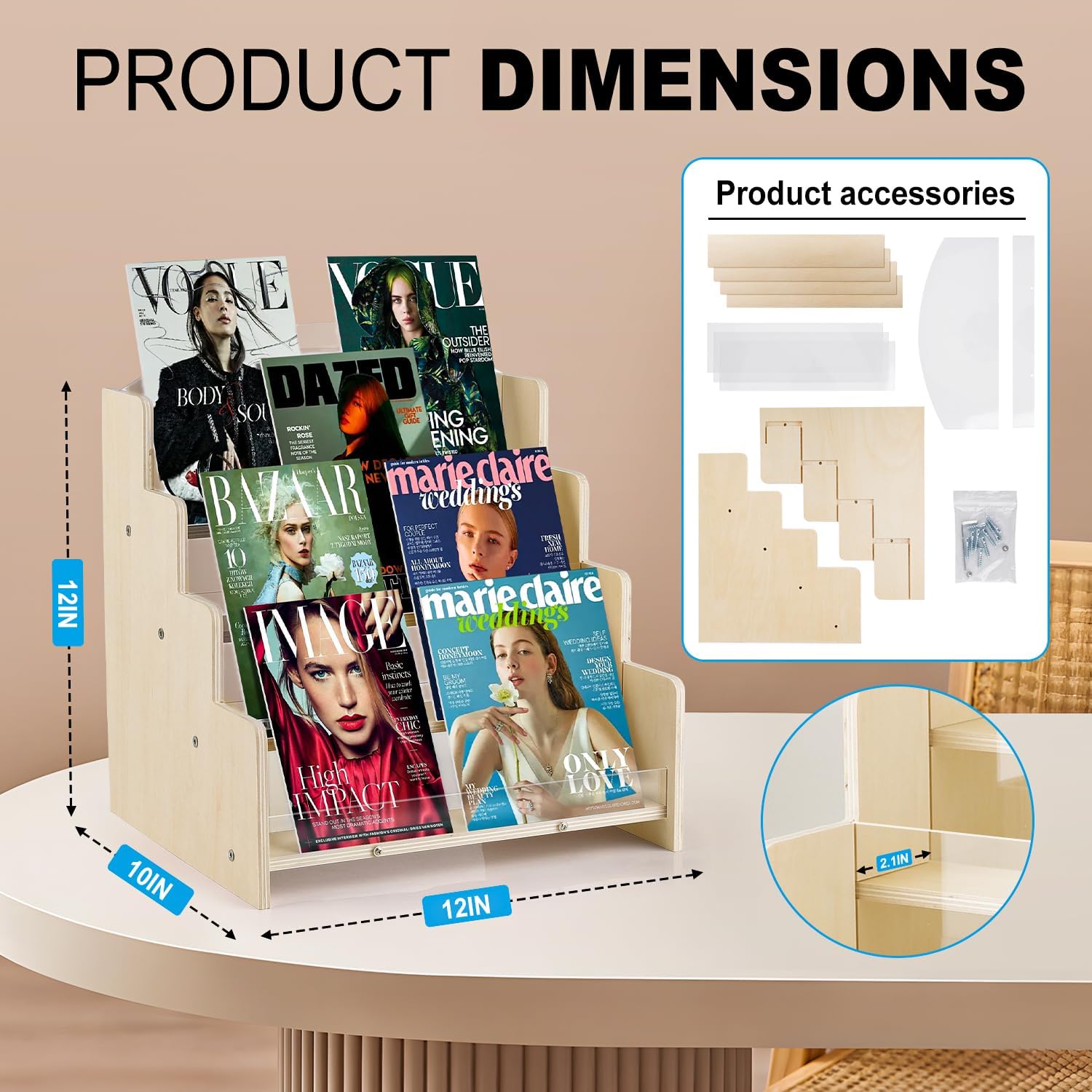 Greeting Card Display Stand , Acrylic Sticker Display Holder for Vendors, Counter Retail Display Rack , 4-Tiered Wooden/Acrylic Display stand for postcard /Brochure/Photos/Picture
