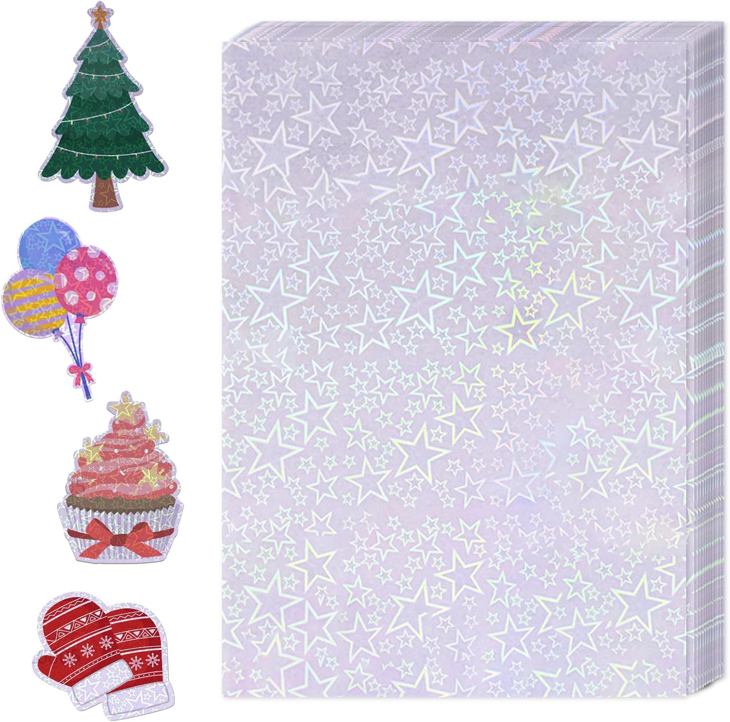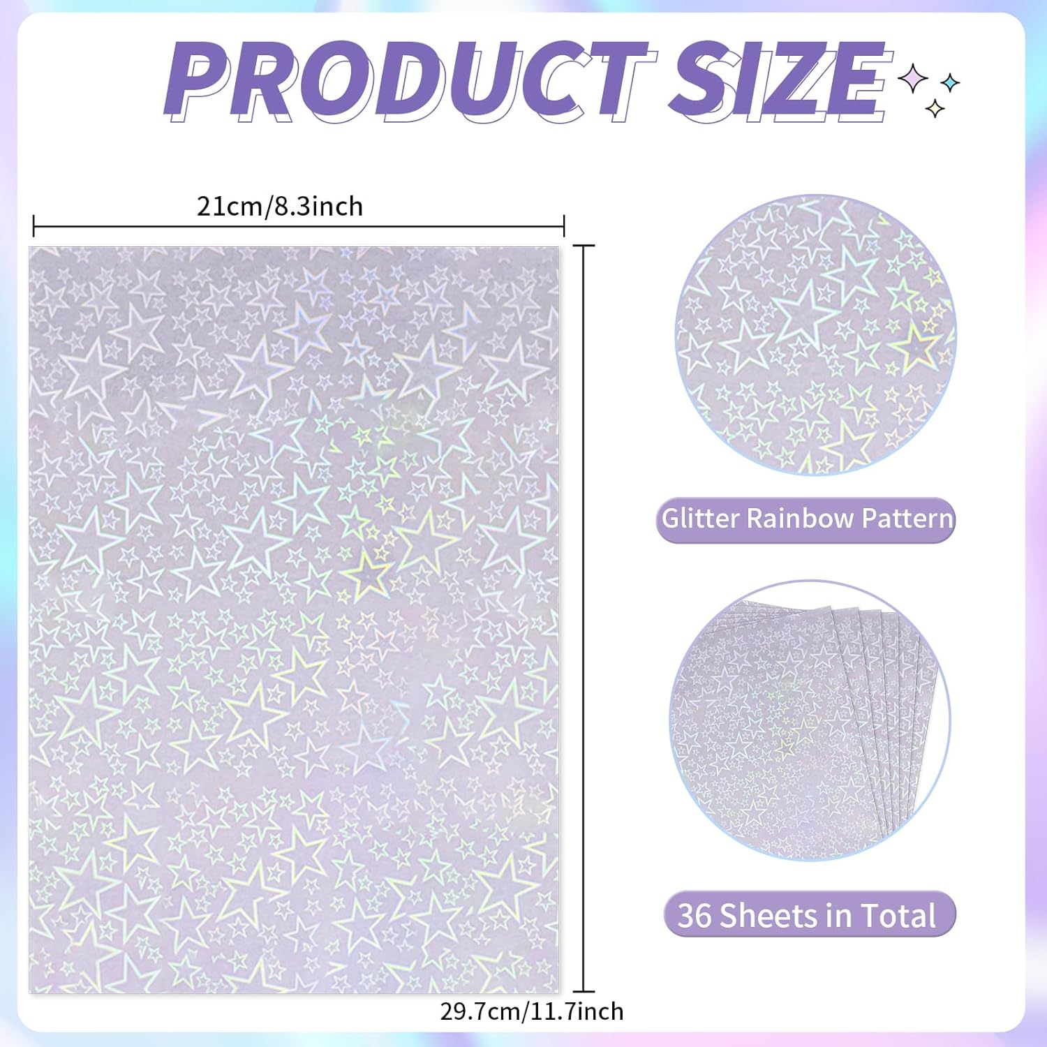 36 Sheets Holographic Sticker Paper,Holographic Laminate Sheets,A4 Size Clear Vinyl Sticker Sheets Self-Adhesive Rainbow Overlay Sheets,11.7 x 8.3 Inches(Five-Pointed Star)